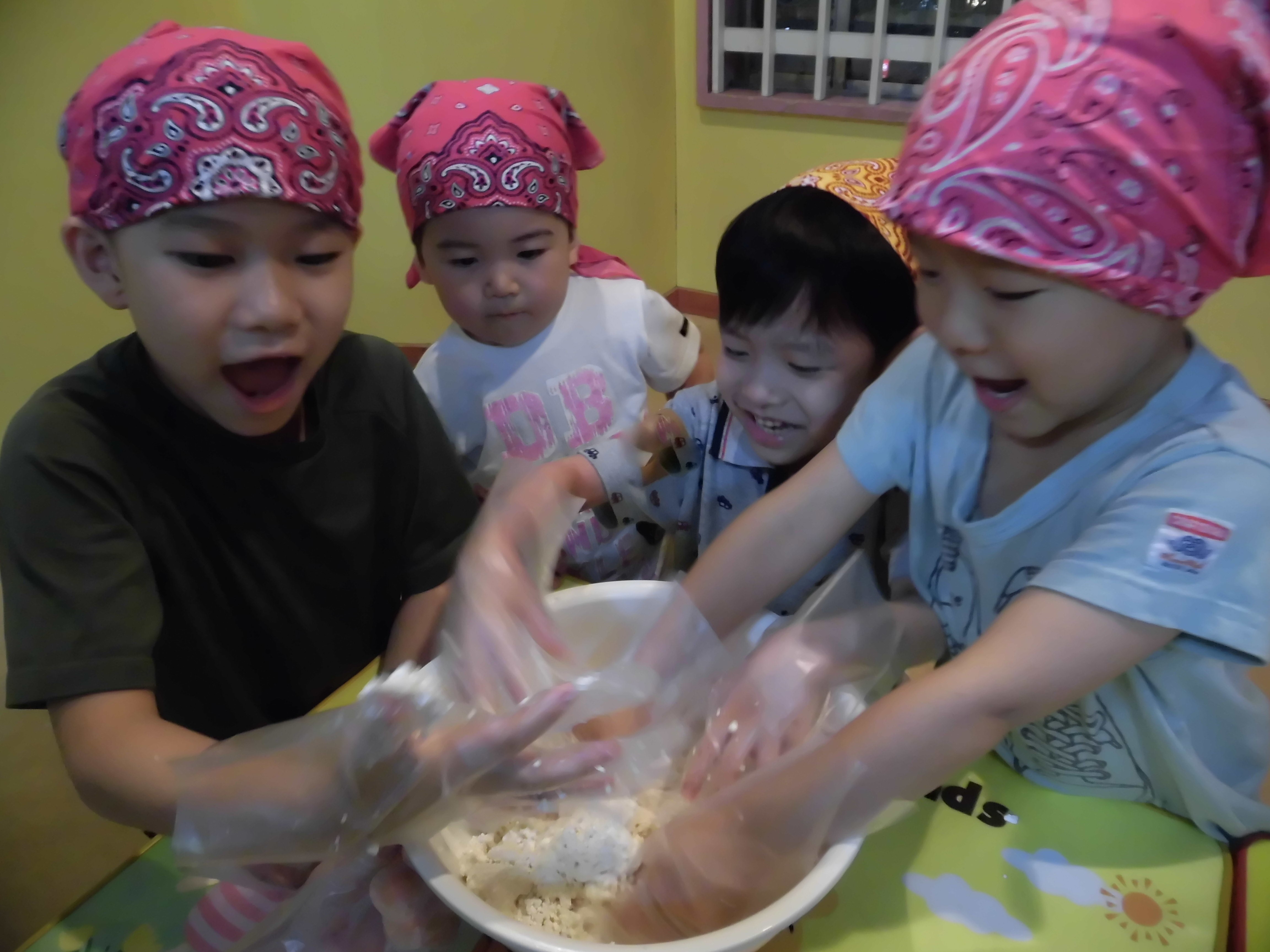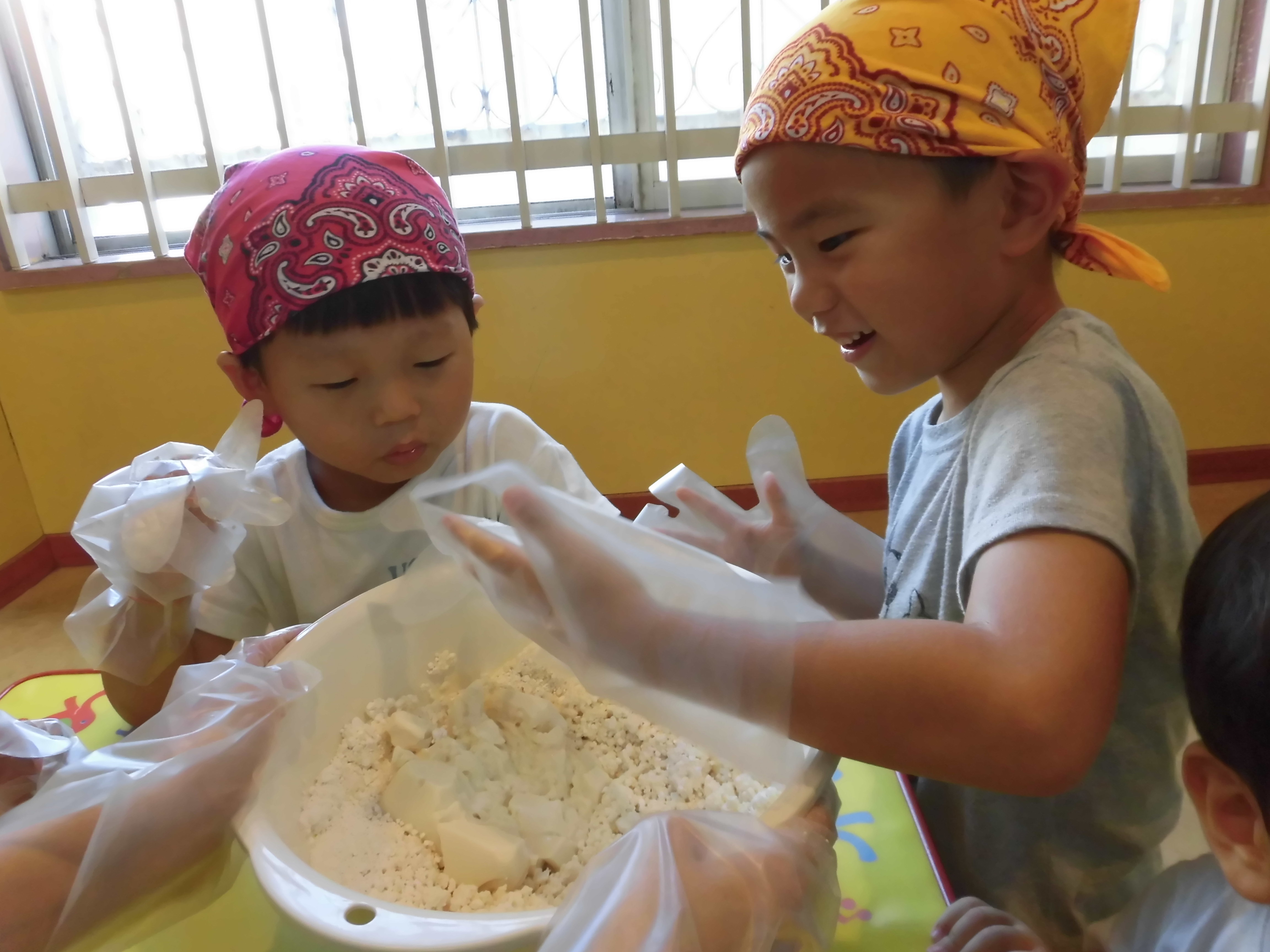 みんなで粉を混ぜるところから協力して作りましたよ!