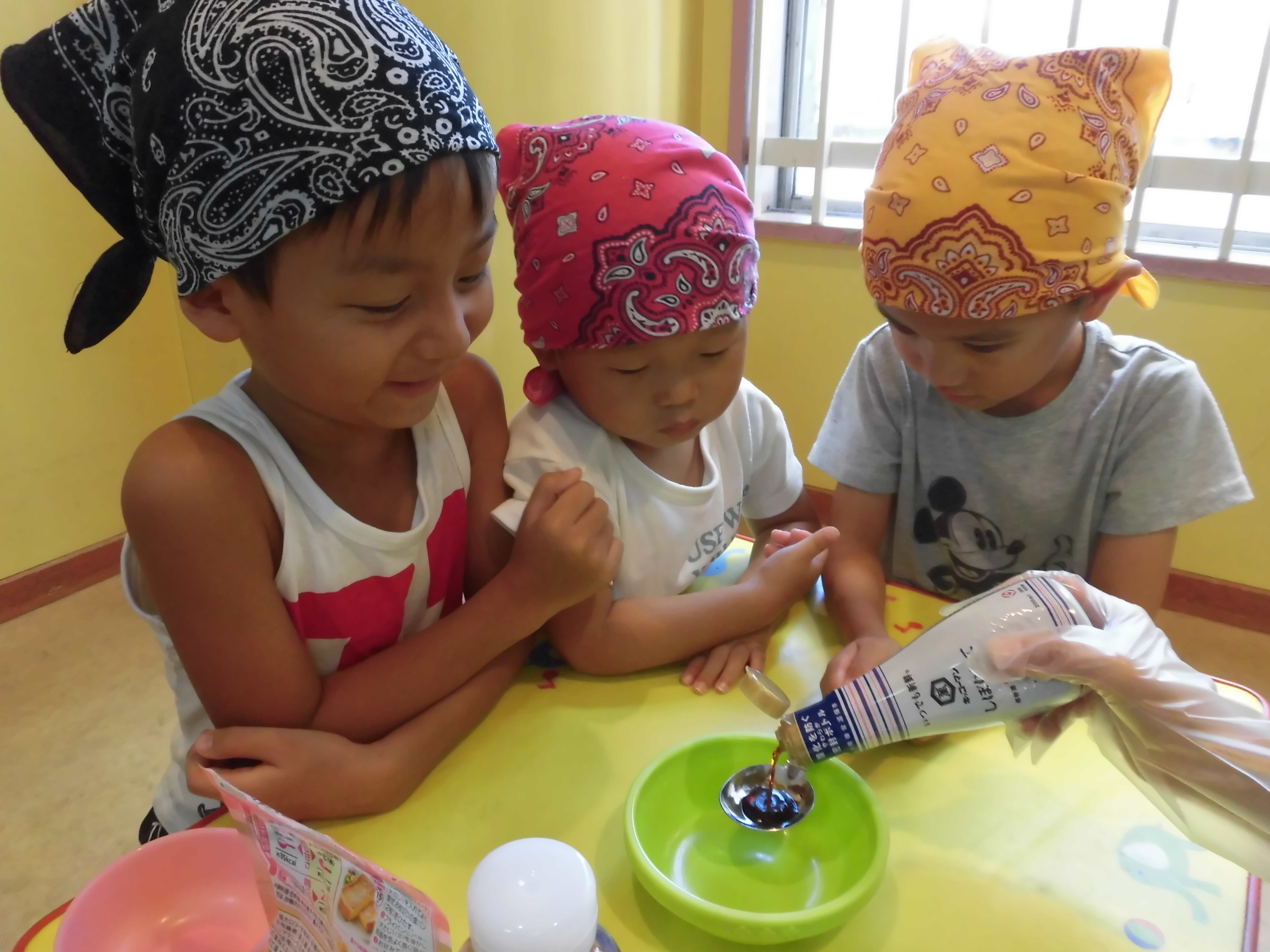 味付けは子ども達の好きなトッピングを3種類作り、自由に乗せて楽しみました♡
