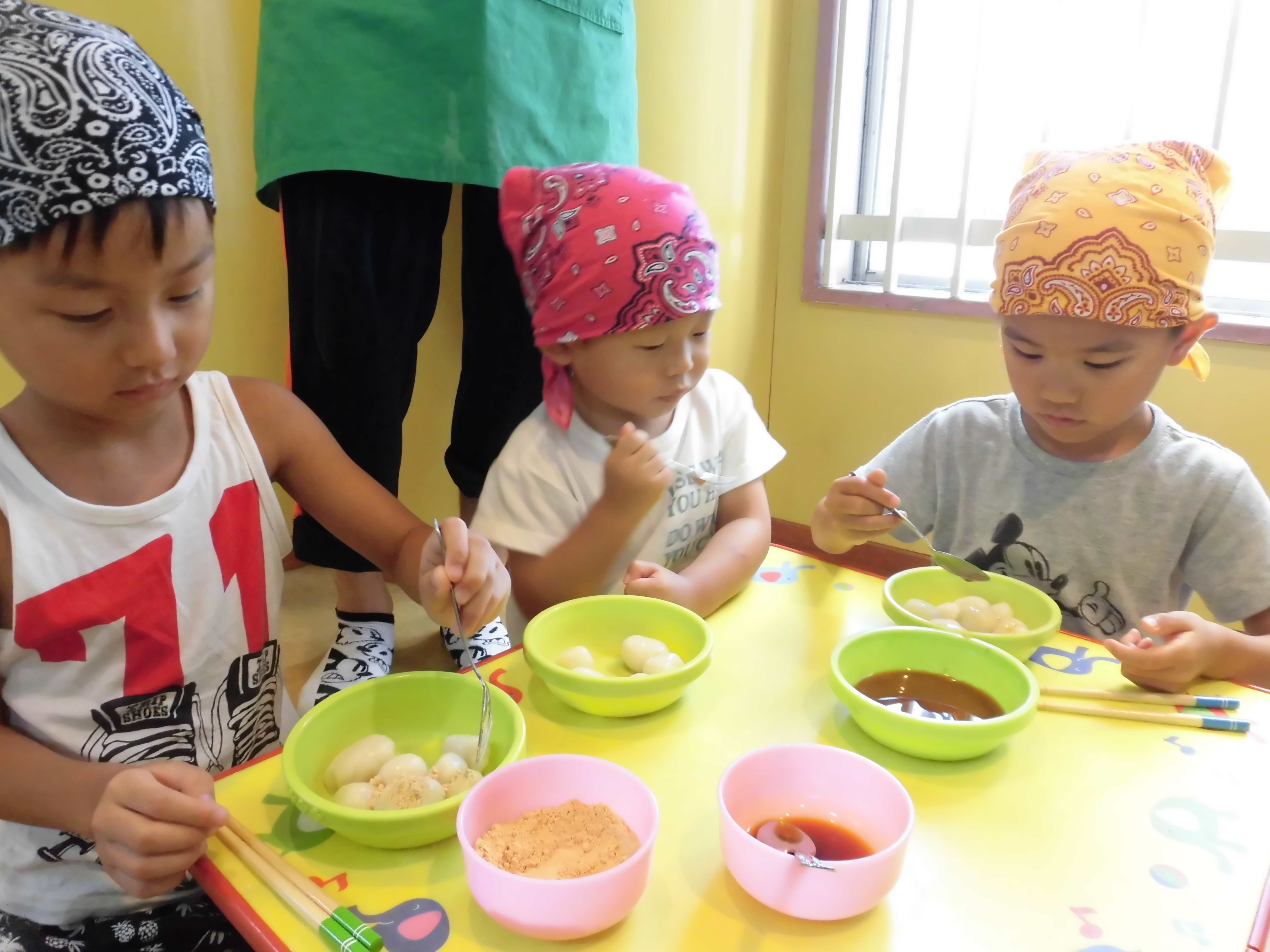 子ども達、嬉しそうにお団子をくるくる丸めていました?
