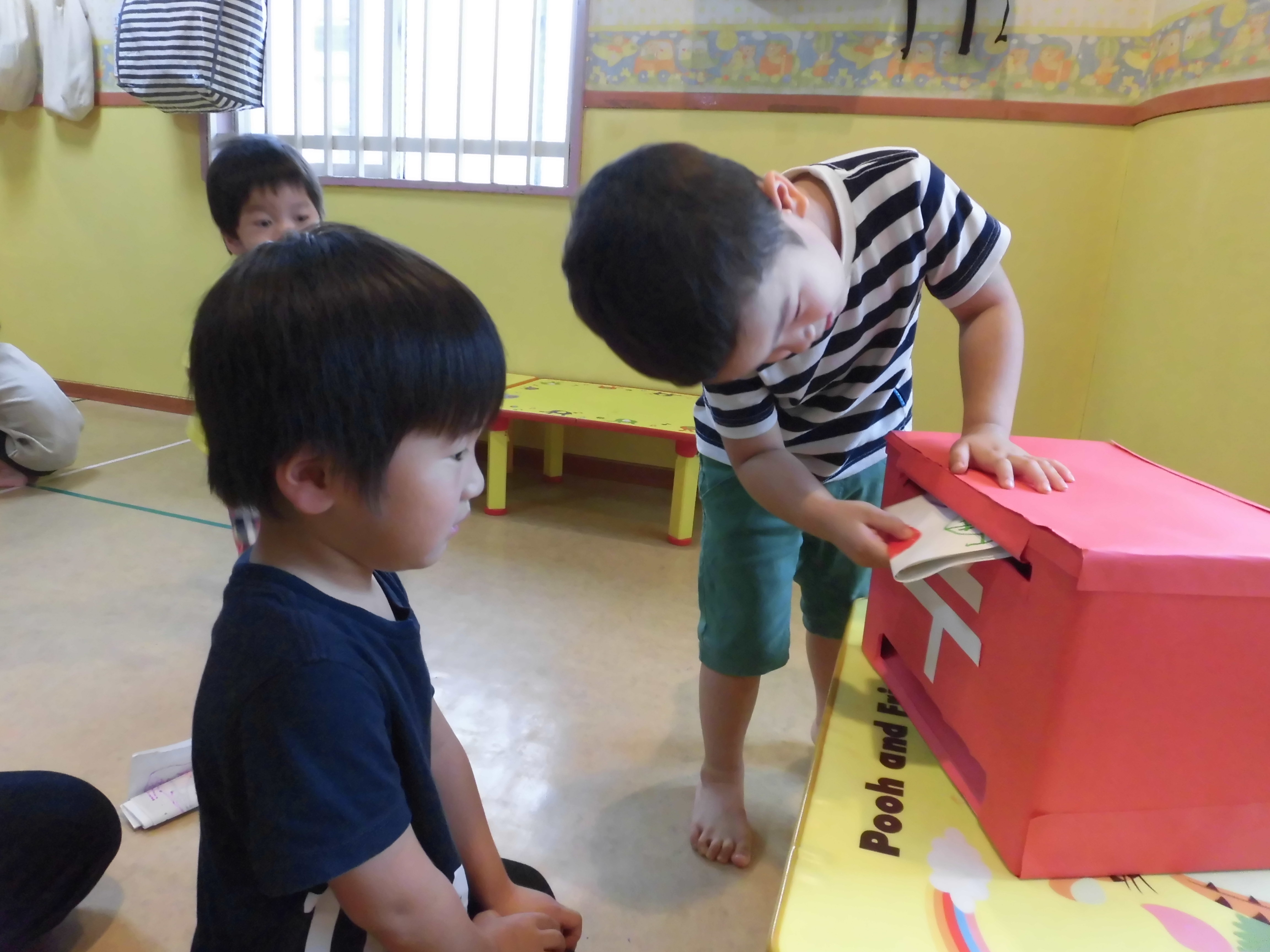 今日は、お友達とペアになってお手紙を書いてポストに投函して送り合いっこをしましたよ( ^ω^ )