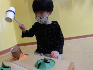 小さいグループさんは、もぐらが穴から顔を出すと大喜び😆