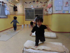 今日はお部屋に障害物を作ってサーキットをして遊びました⭐️