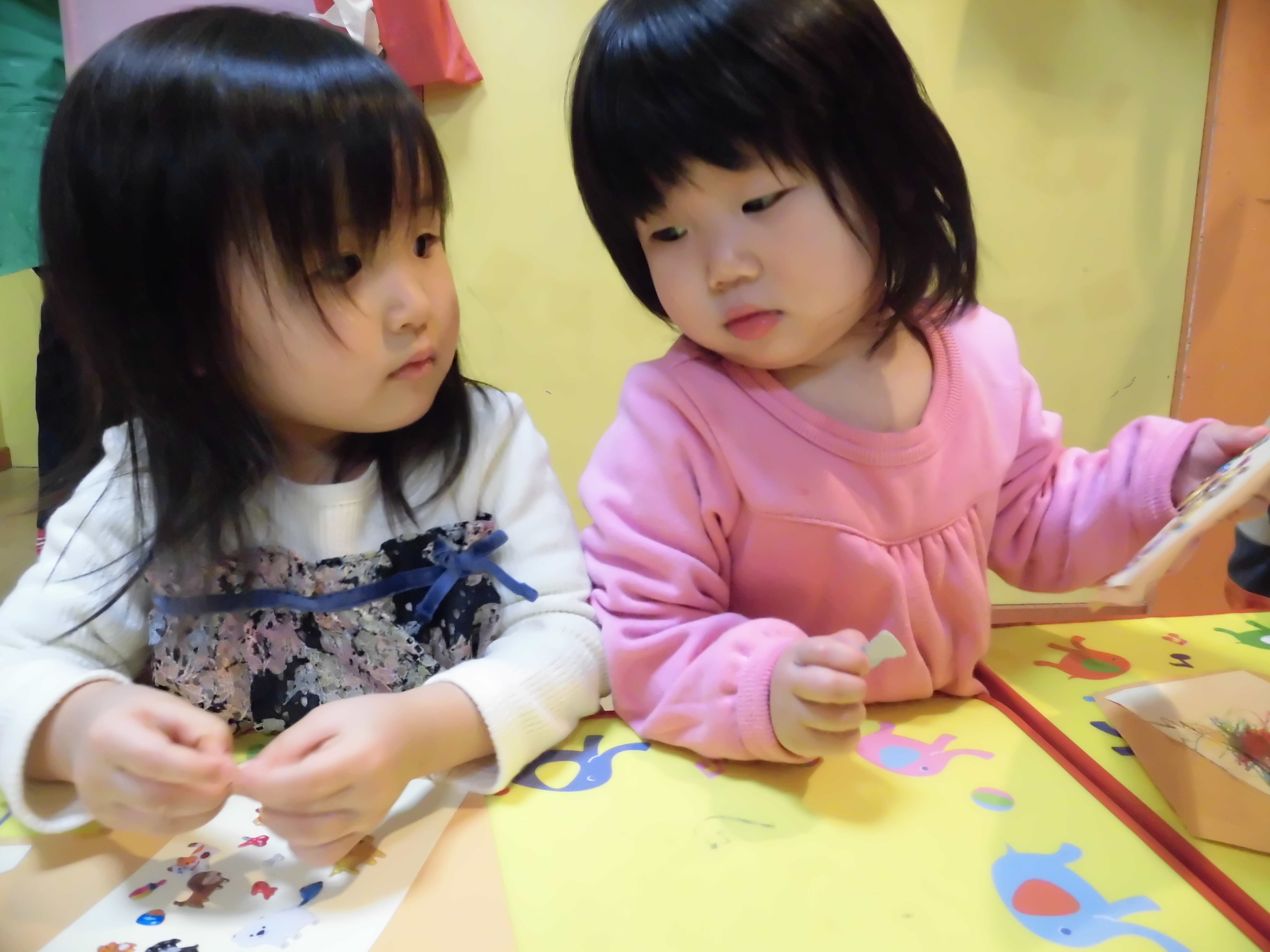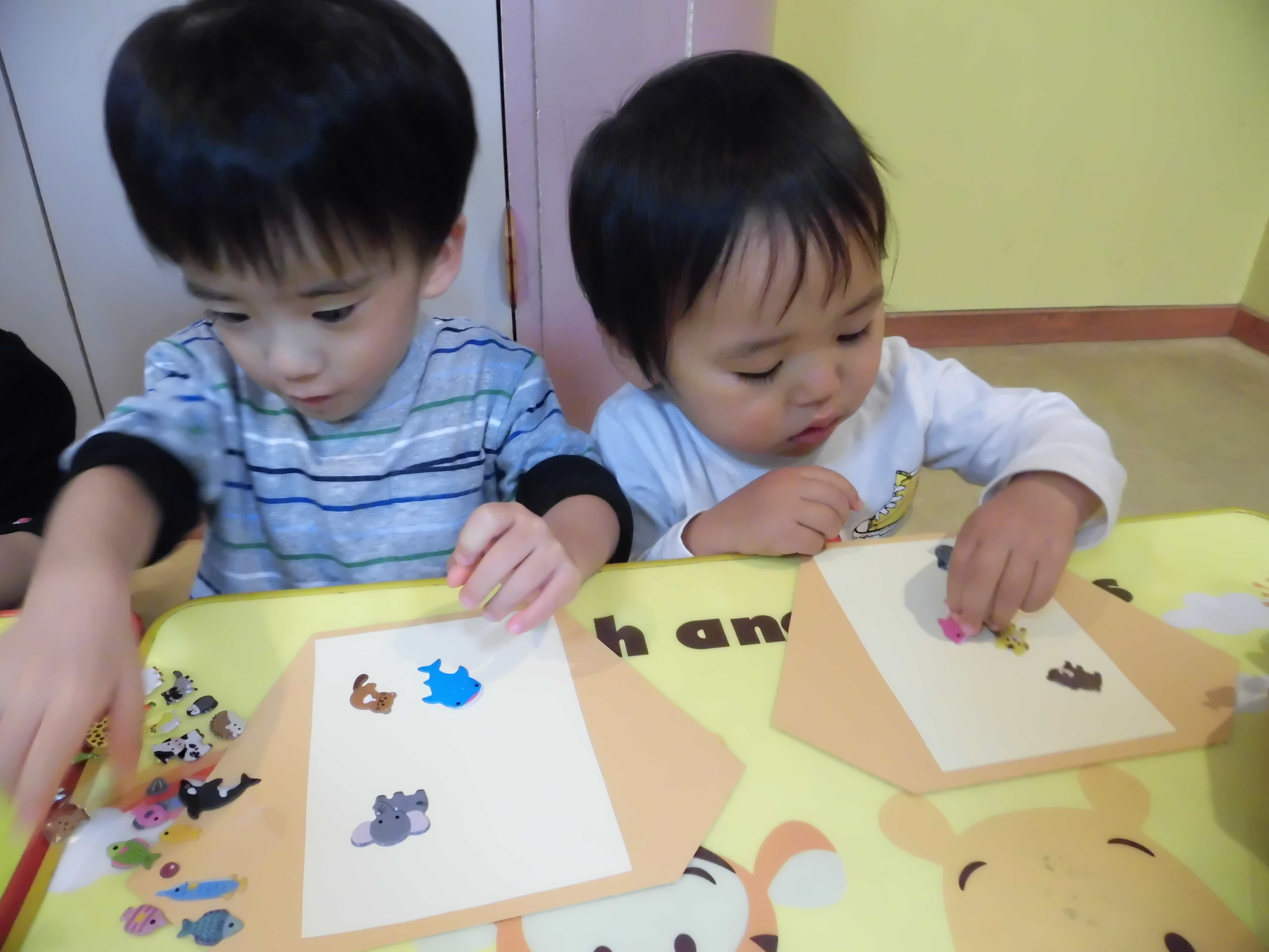 動物シールを「ネコさん!」「キリンさん!」など知っている名前を言いながら貼っていて可愛かったです♡