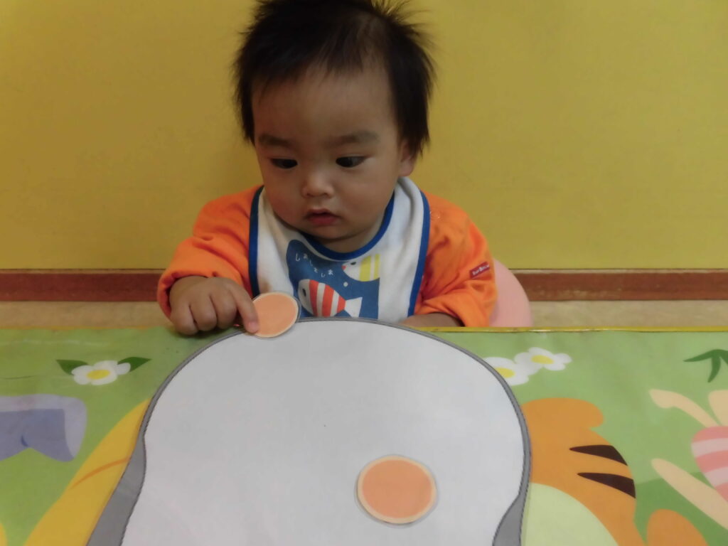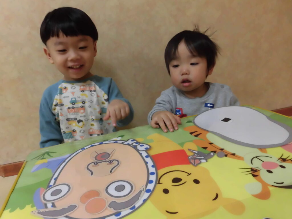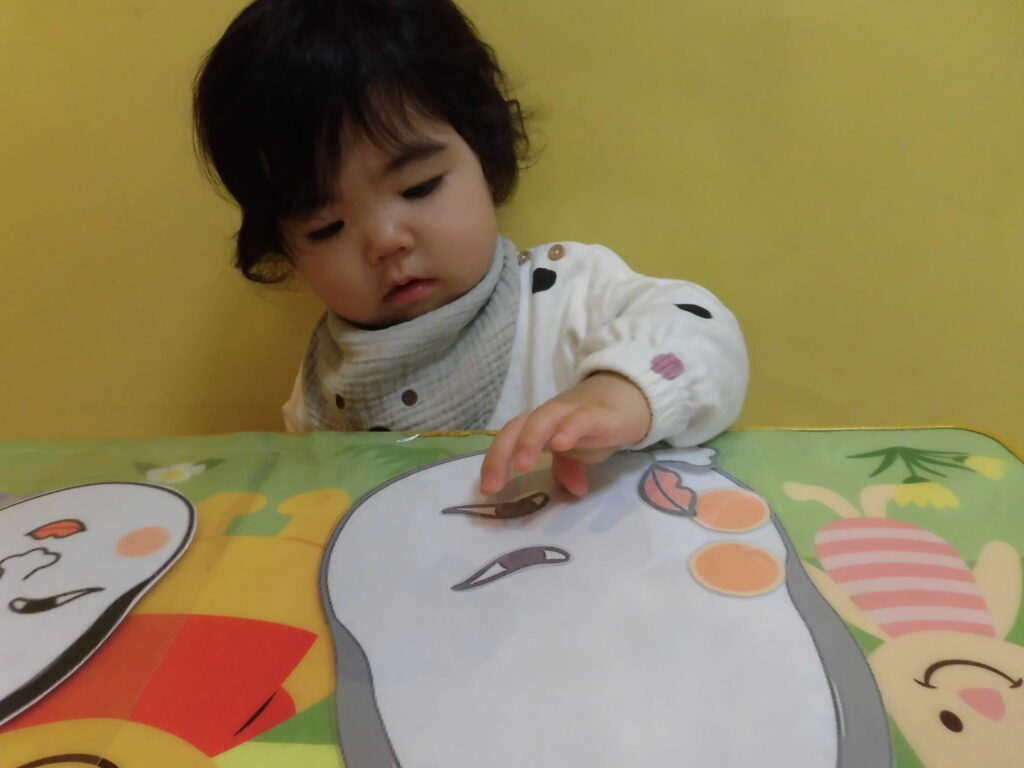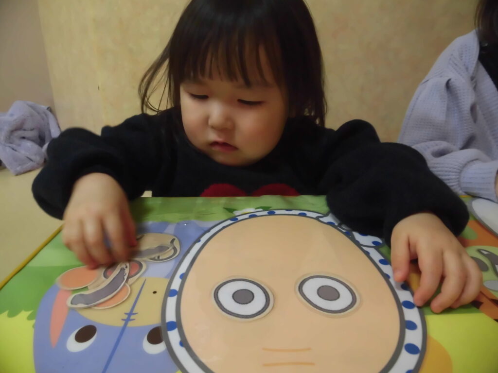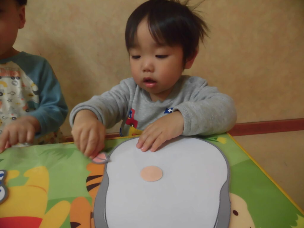 大きい子は見本を見ず、自分が思うようにパーツを置いていきました!位置はあっていましたが、向きが違うかったりと惜しかったです^_^また、「面白い顔つくりたーい」といろんなお顔を作っていました☺︎☺︎