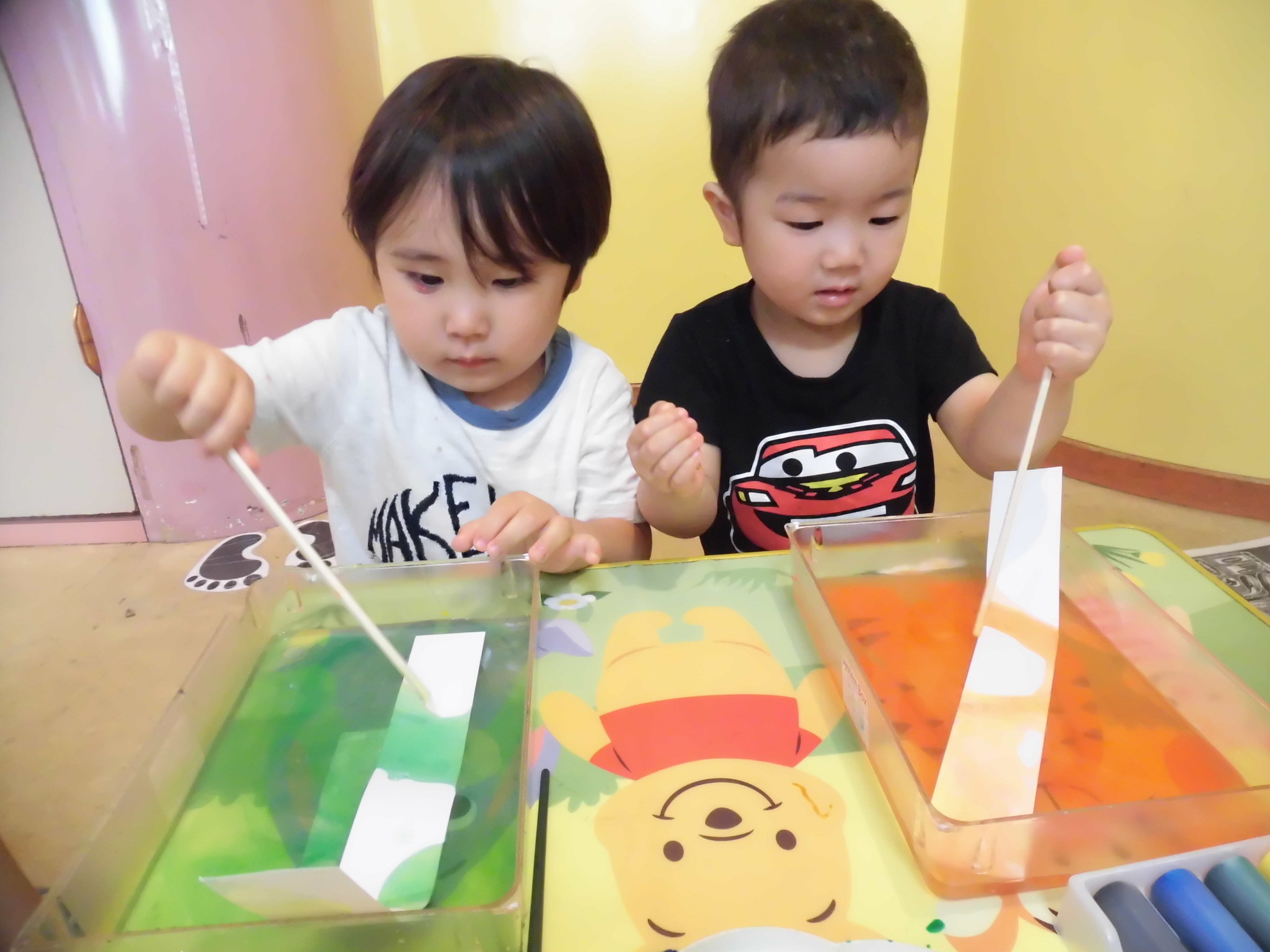 染まった画用紙を見るととても満足そうな顔をしていました⭐