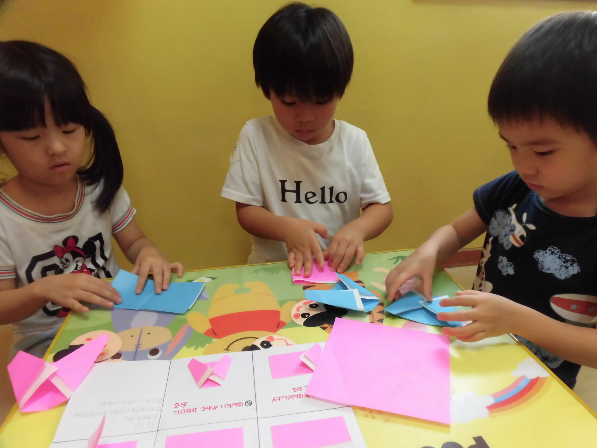 「こう?」「このぐらい?」と保育士に細かく折り方を聞きながら