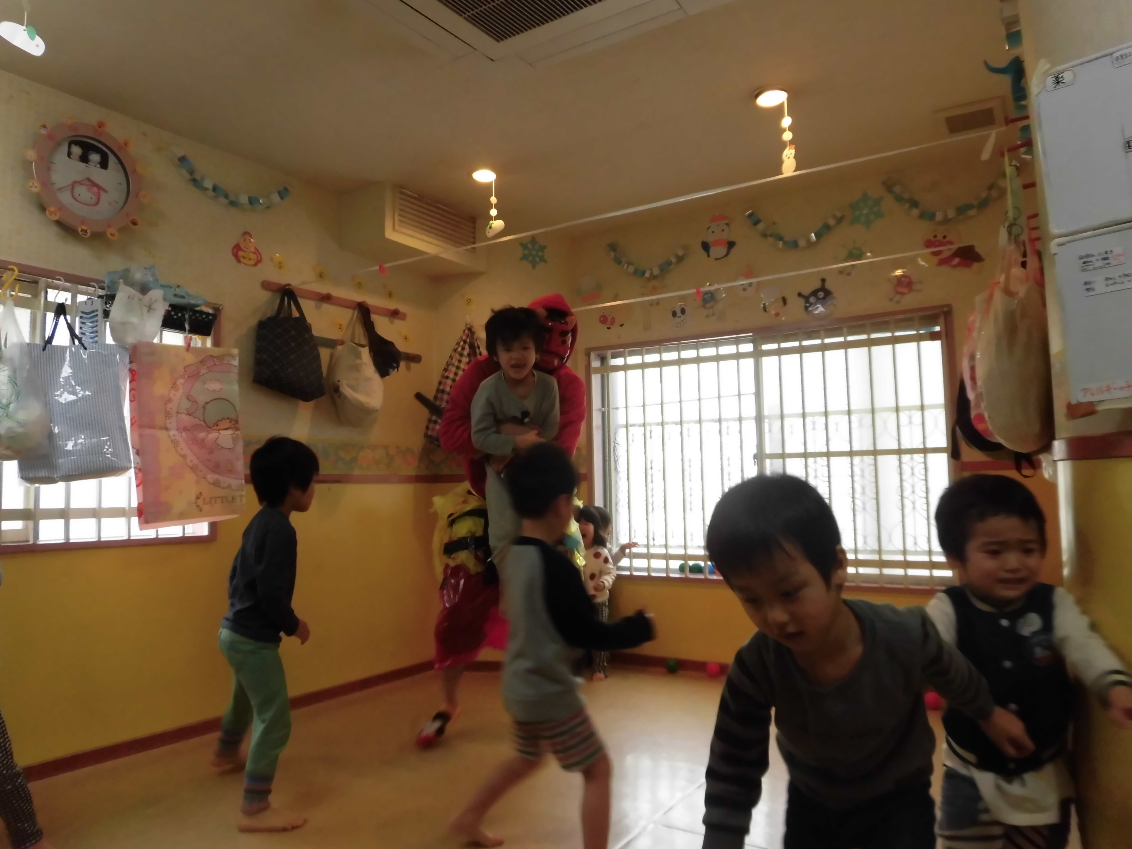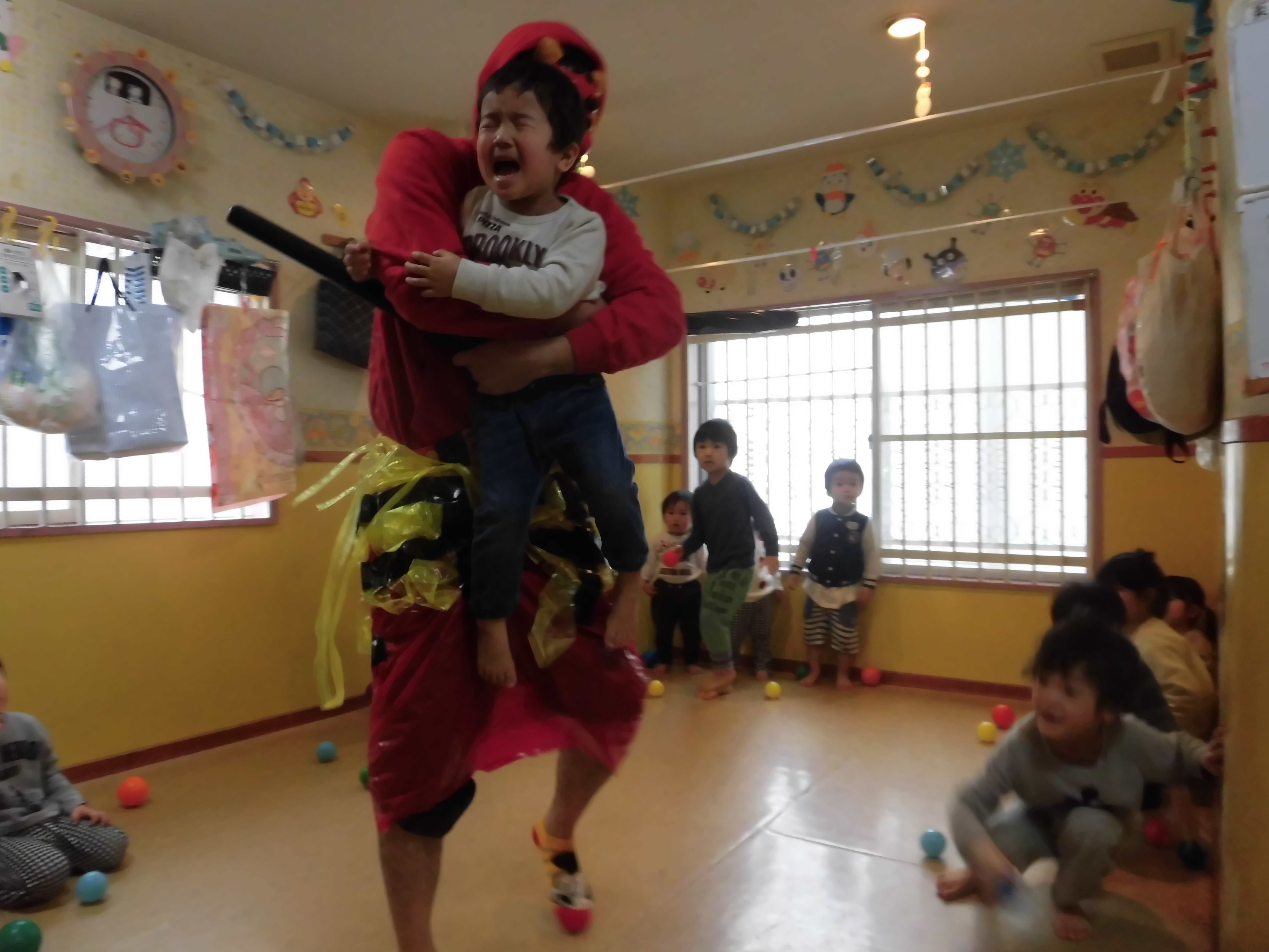 大きい子達の中には、怖い思いを我慢しながらやっつけにくる子や、泣きながらも「おにはそとーー!!」とボールを投げる子もいて、たくましい姿を見せてくれましたよ!