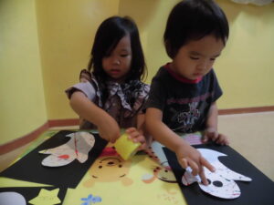 大きいグループさんは、色の組み合わせを考えたり、混ざり合う色を見て楽しんでいましたよ♪