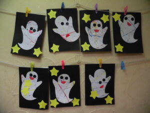 今日はハロウィンに向けて、おばけの製作をしました👻