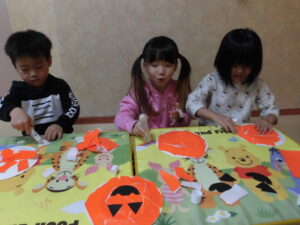 大きくちぎって大胆に貼ったり隙間なく細かく貼っていったりと、みんな自分の貼りたいように貼っていきました!