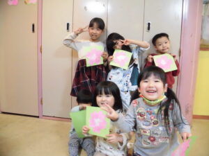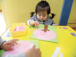 始めは感触を確かめるように桜の花を触っていた子ども達。
