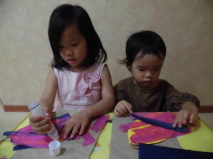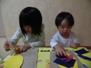 「おいも!おいも!」とノリノリで作っている子や、貼り付ける時に「ぺたっ❤️」と小声で言っている子もいて可愛かったです🎵