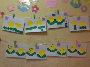 小さいグループさんは、お花にシールを貼りましたよ♪