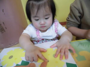 小さいグループさんは、お花にシールを貼りましたよ♪