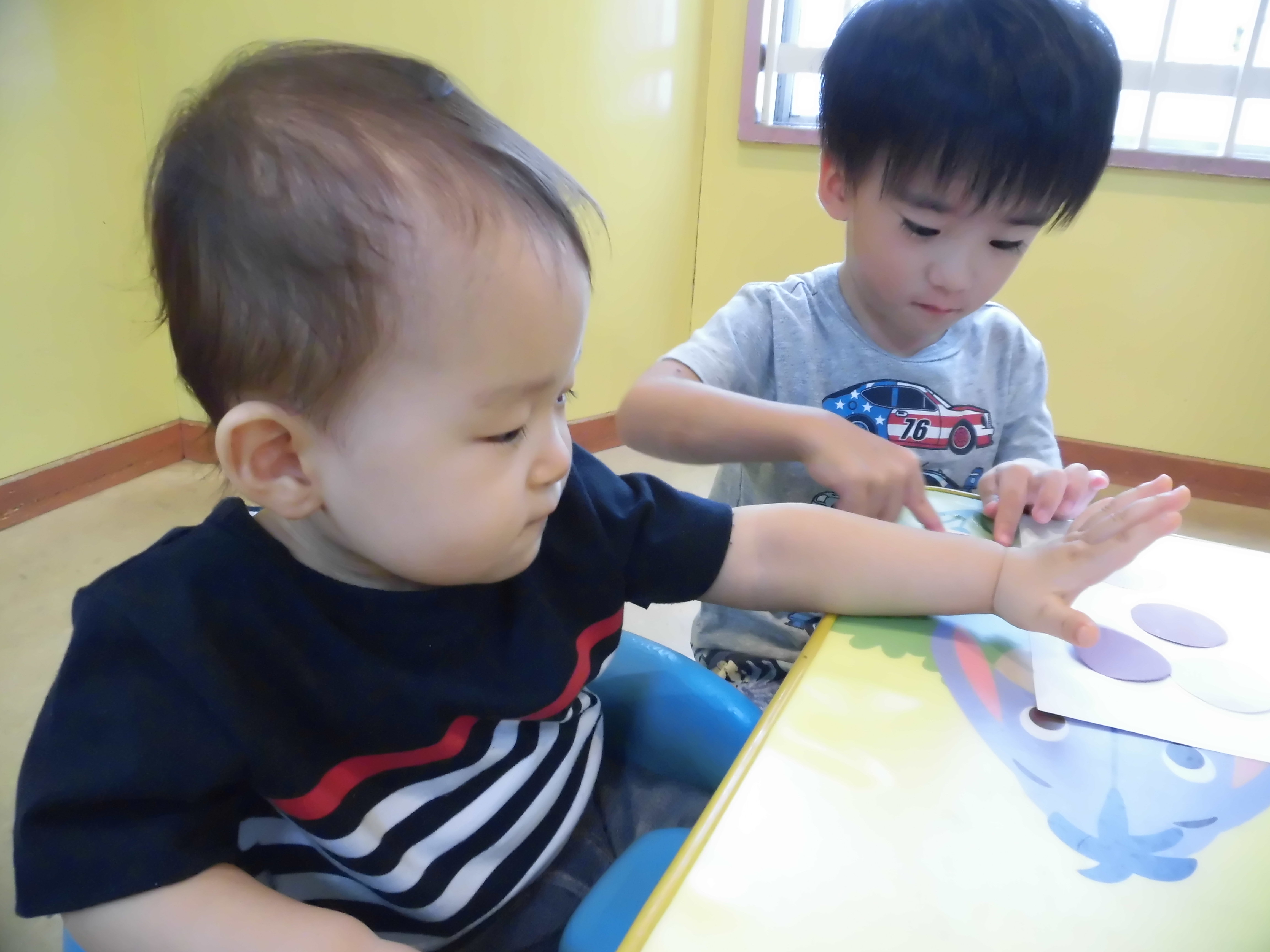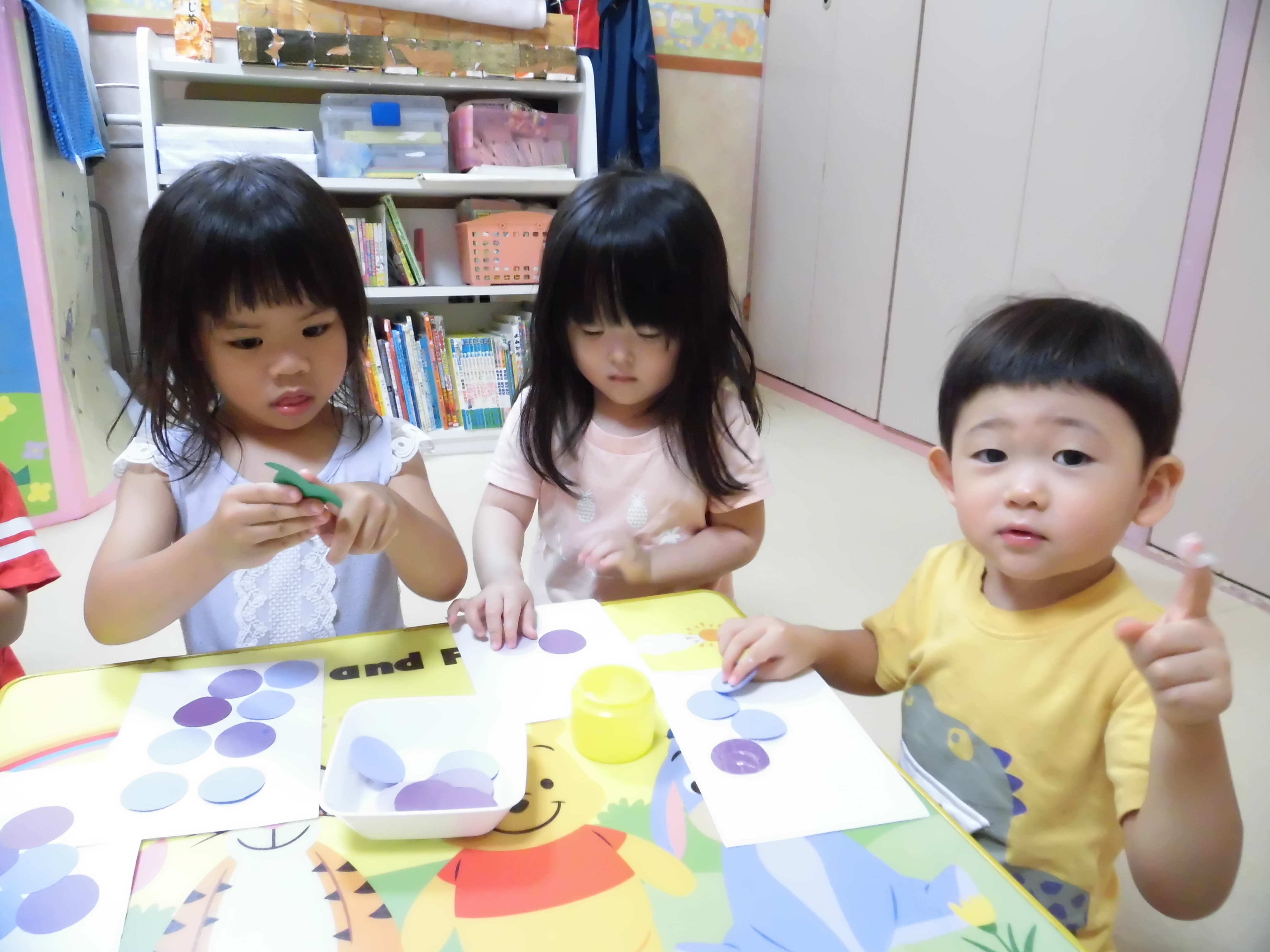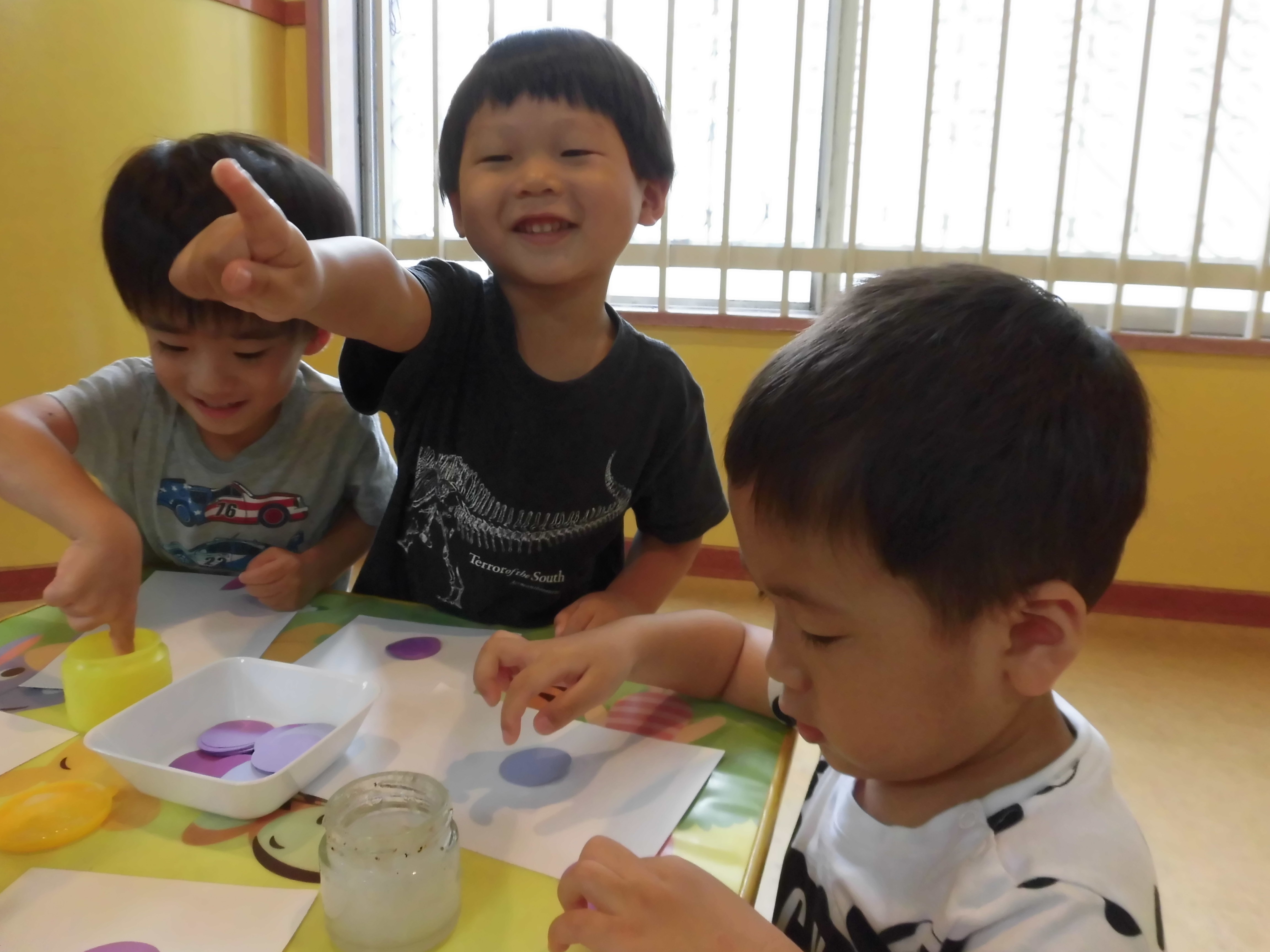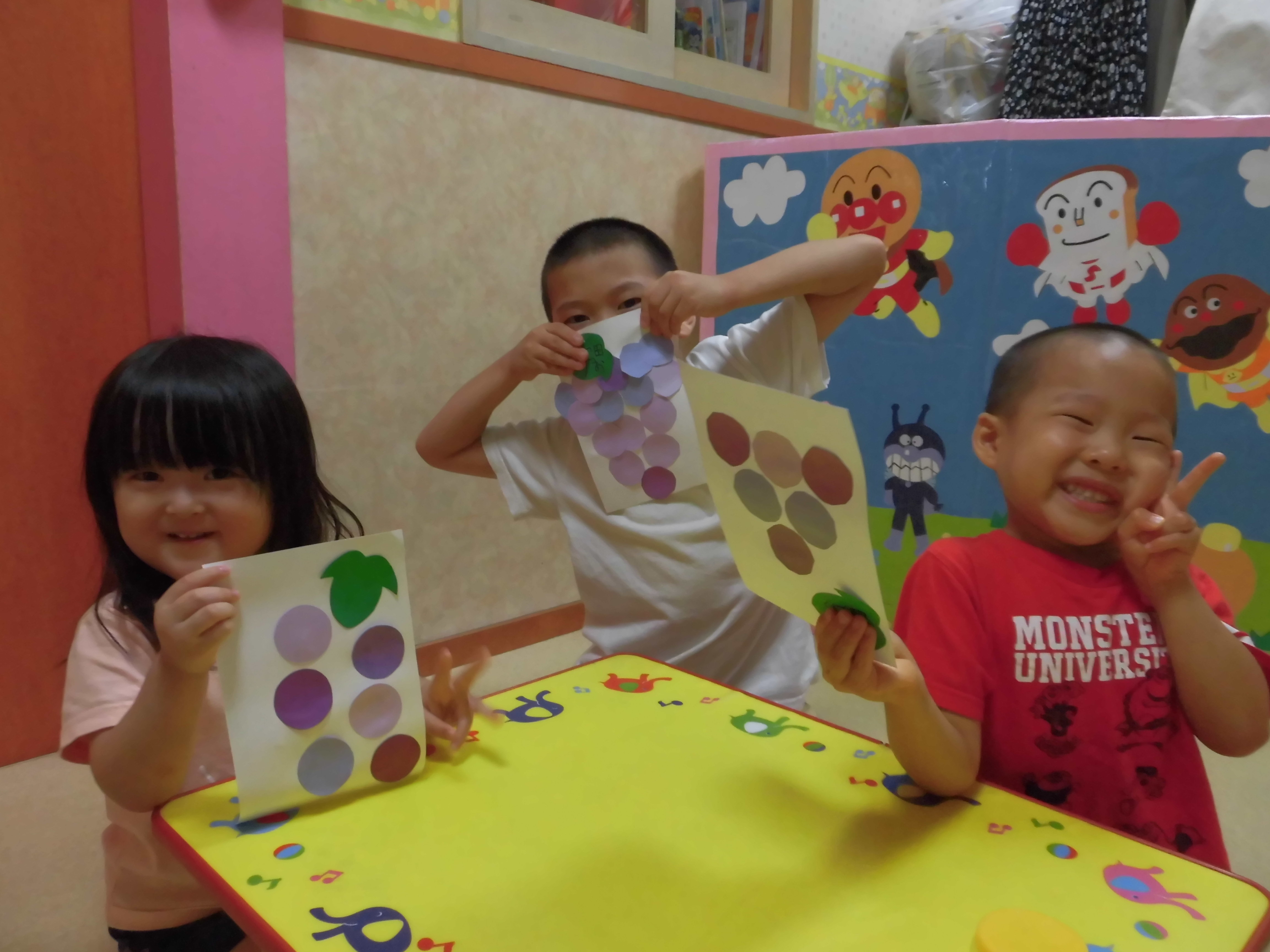 小さい子は、ぶどうの粒をのりで貼りました。