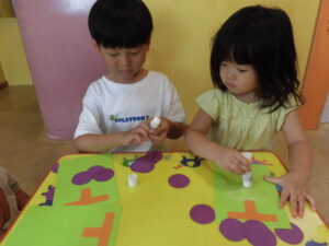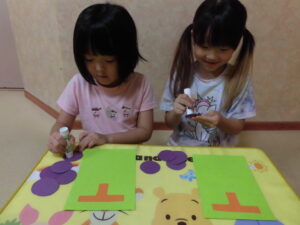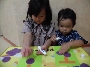 大きい子達はぶどうの形をしっかりイメージしながら貼っていましたよ😊