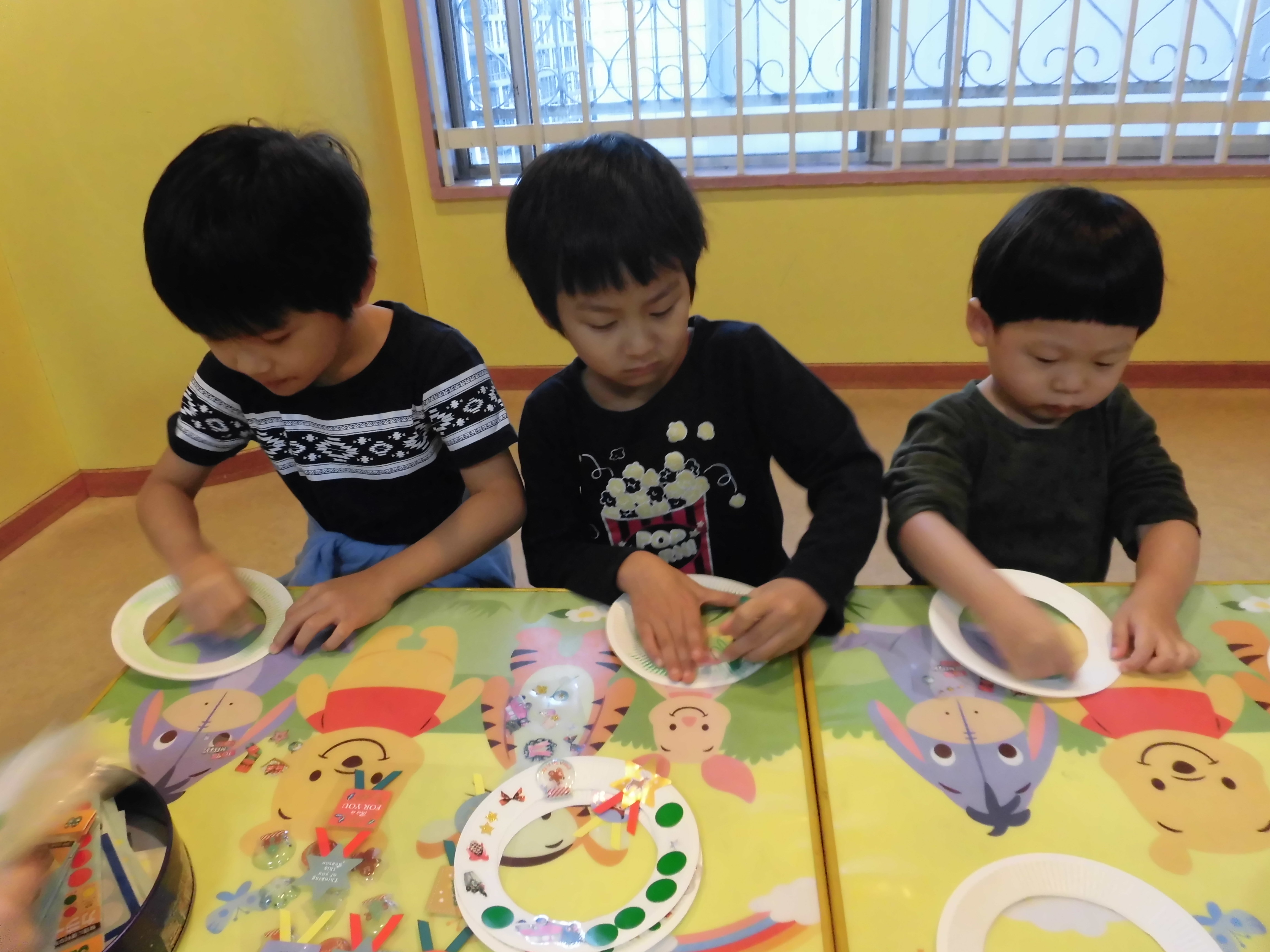 小さい子はシールを使い、大きい子はシールとクレヨンでデコレーションしました?