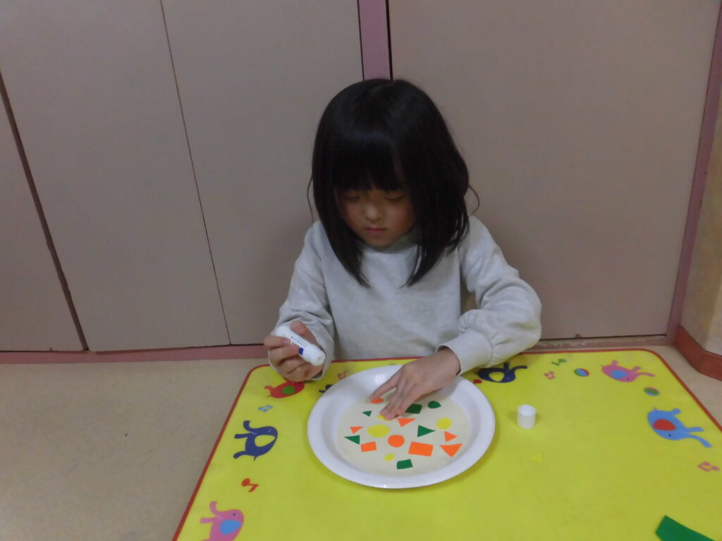お皿のシチューに具材をシール・花紙・折り紙で具材を作って入れていきます。