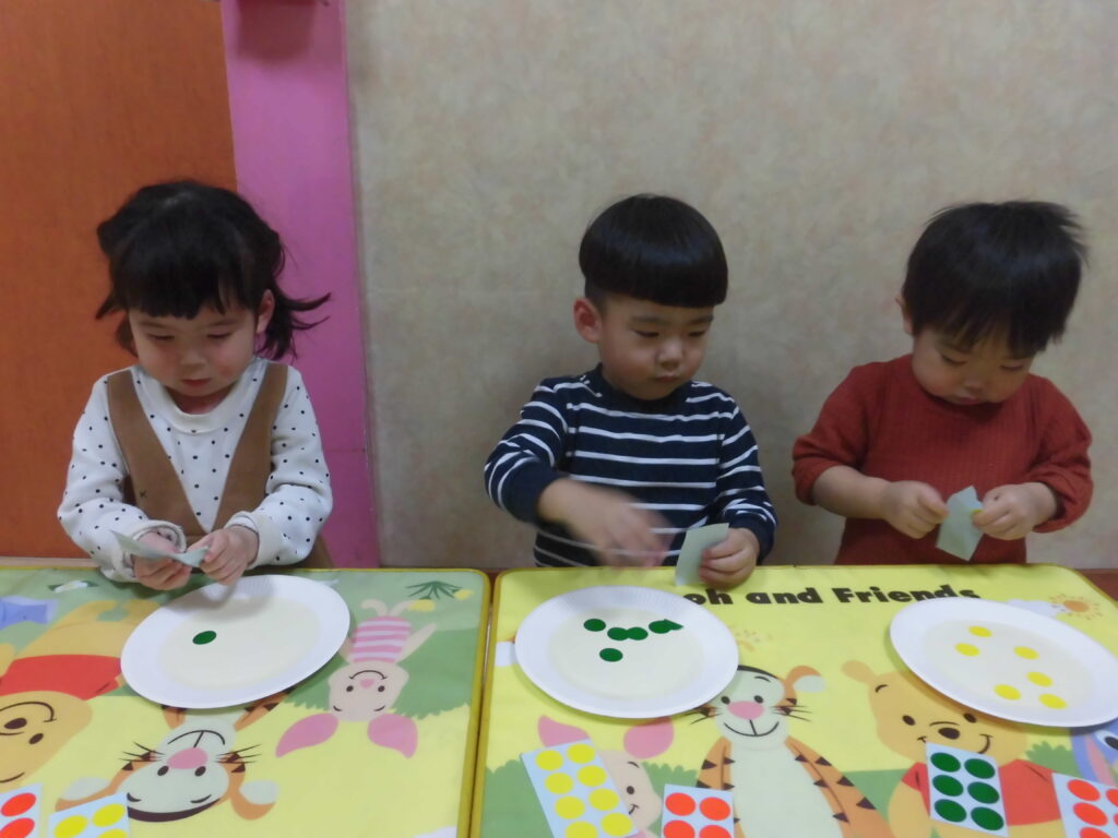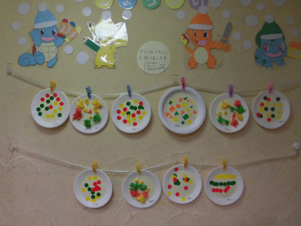 花紙の子は丸めて貼る時にサイズを変えて大きい人参や小さなコーンなどを作っていました!