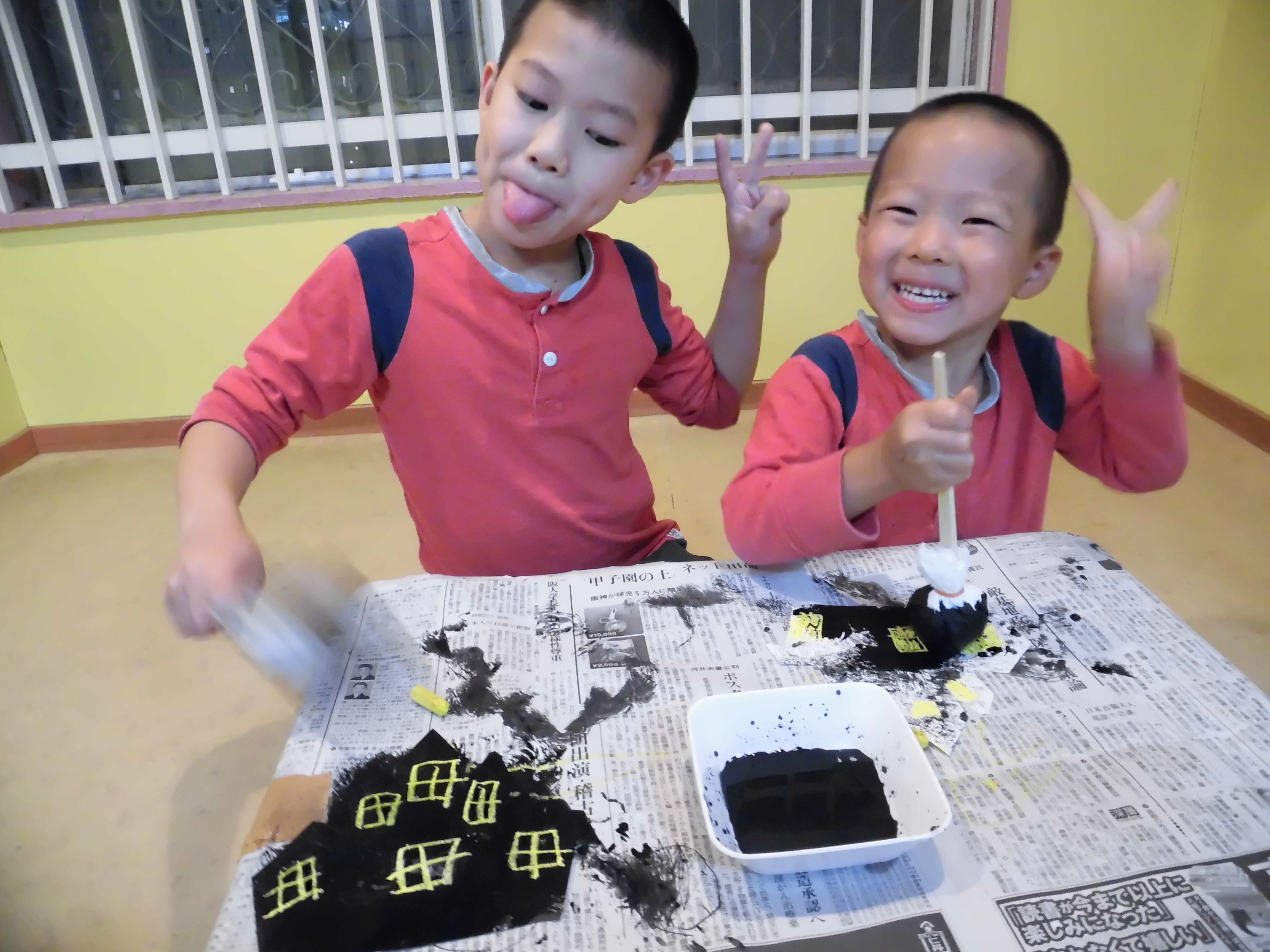 タンポを使ってハロウィンのお城を製作しました?✨