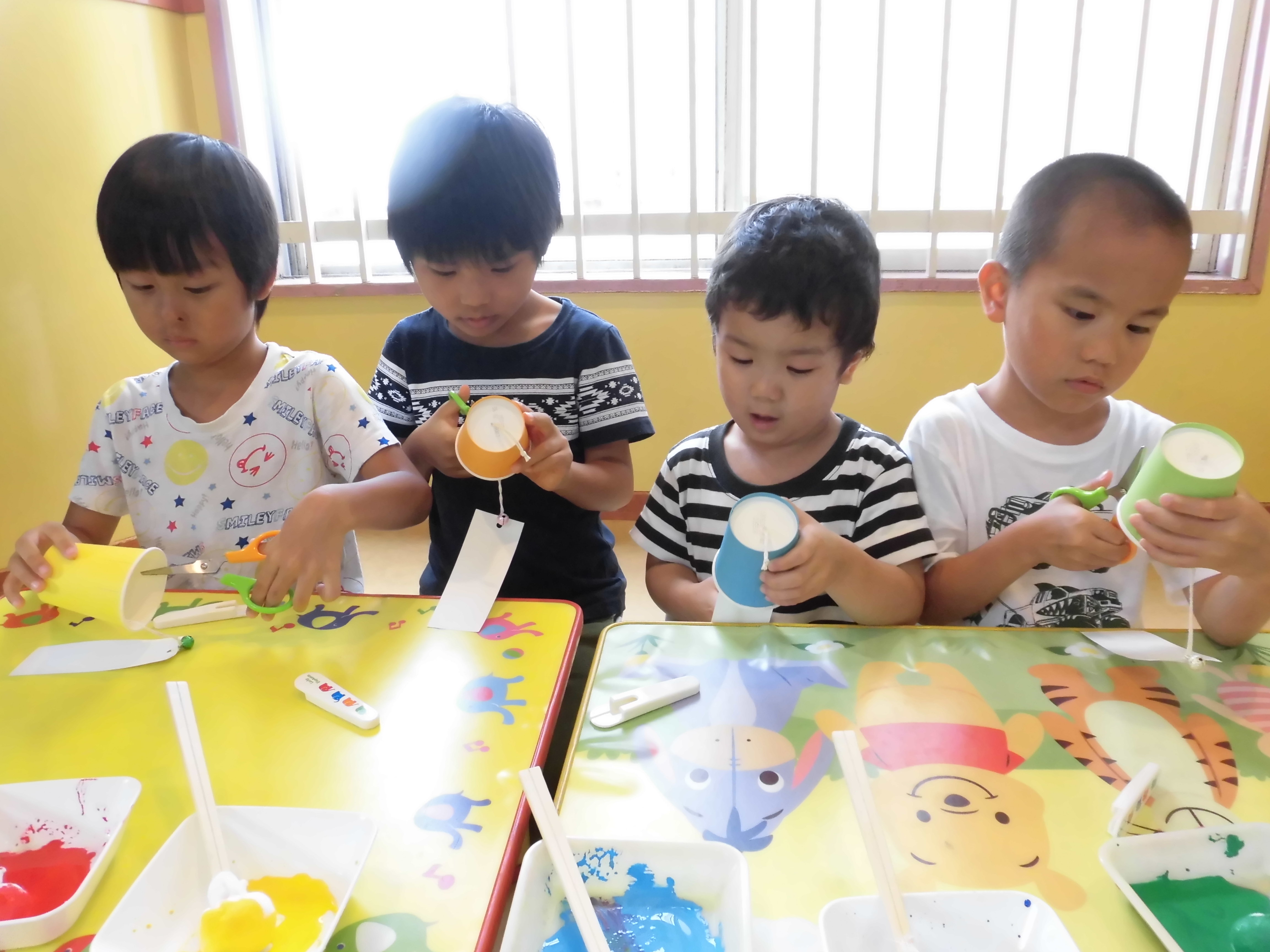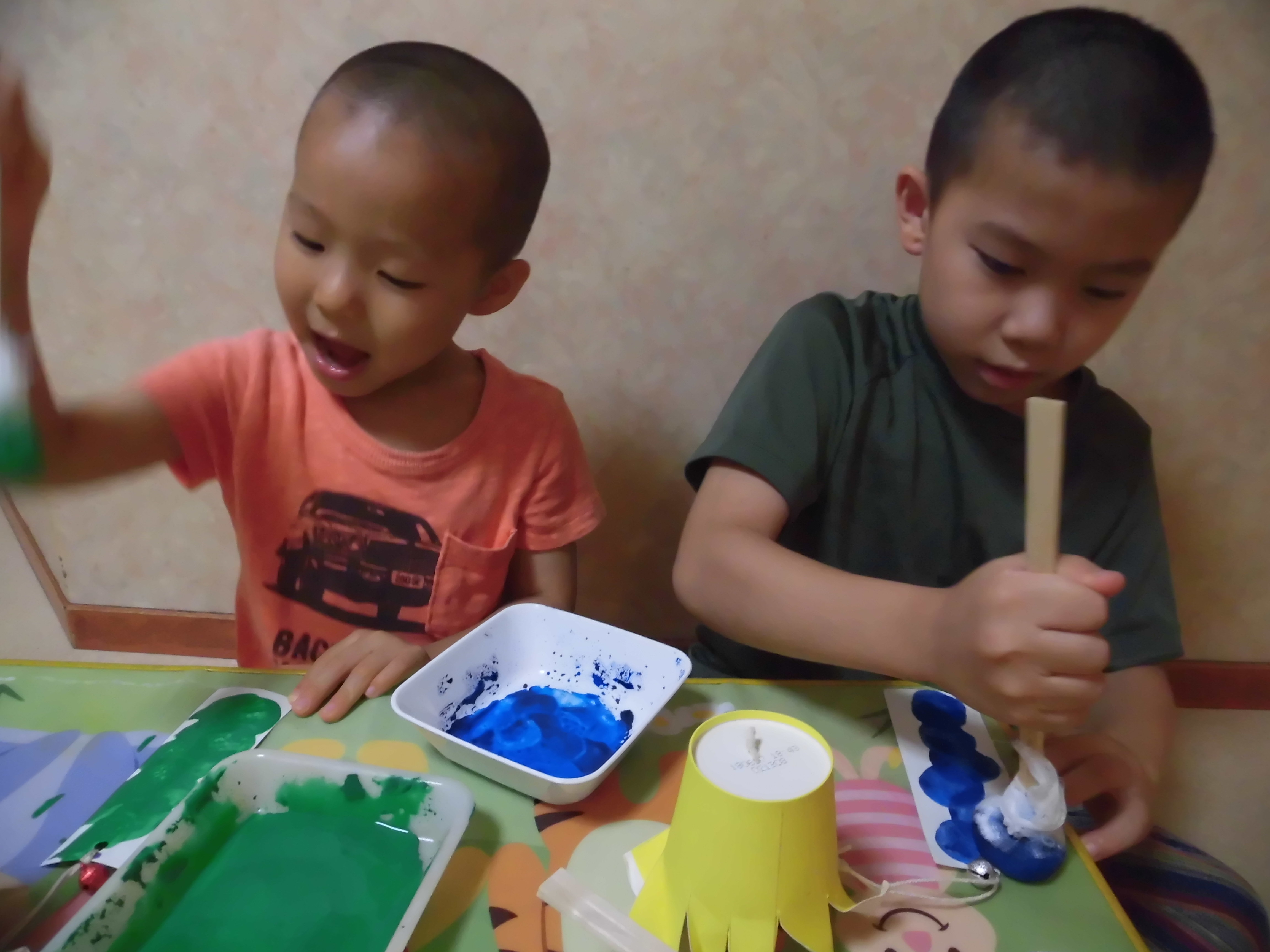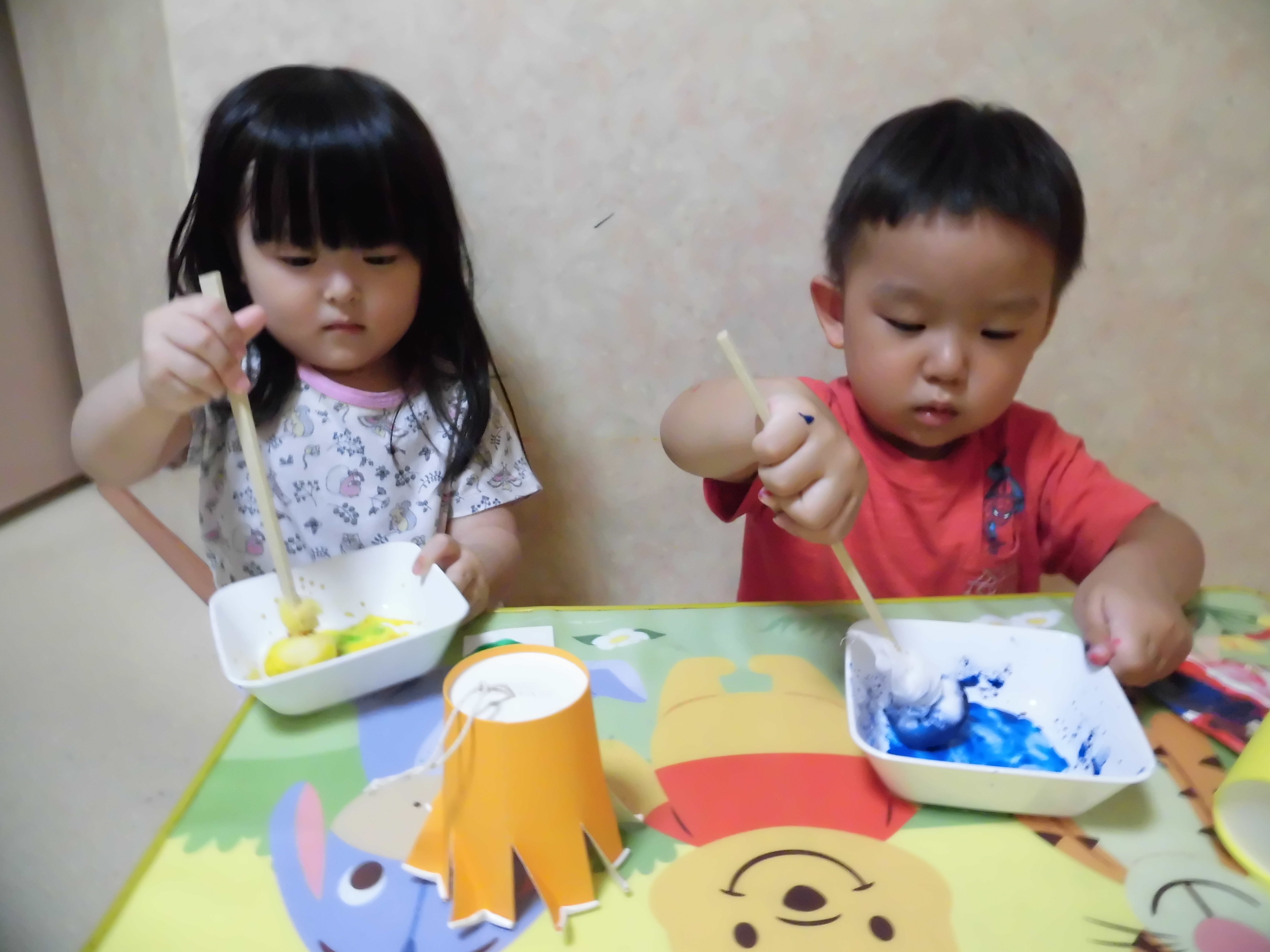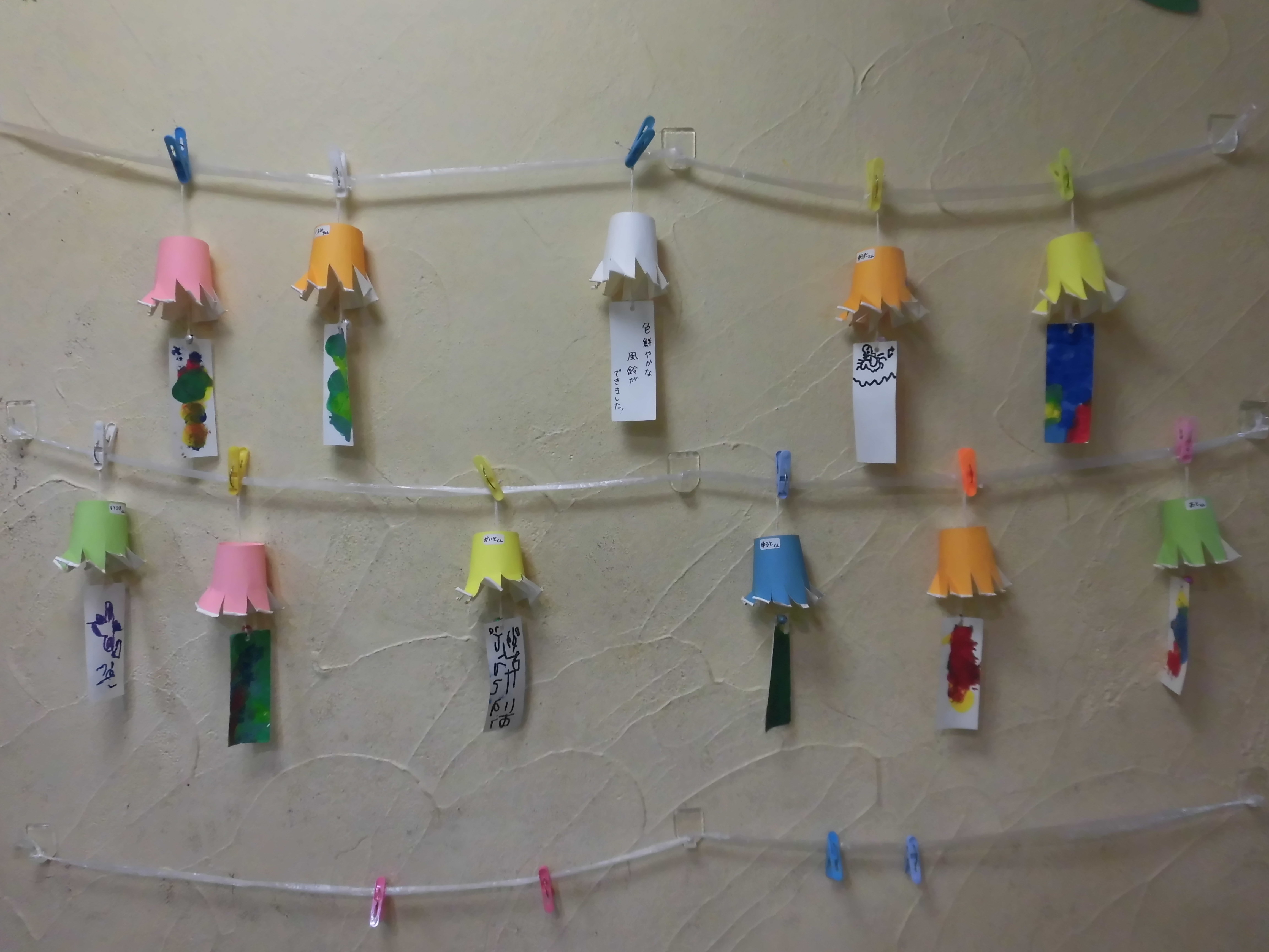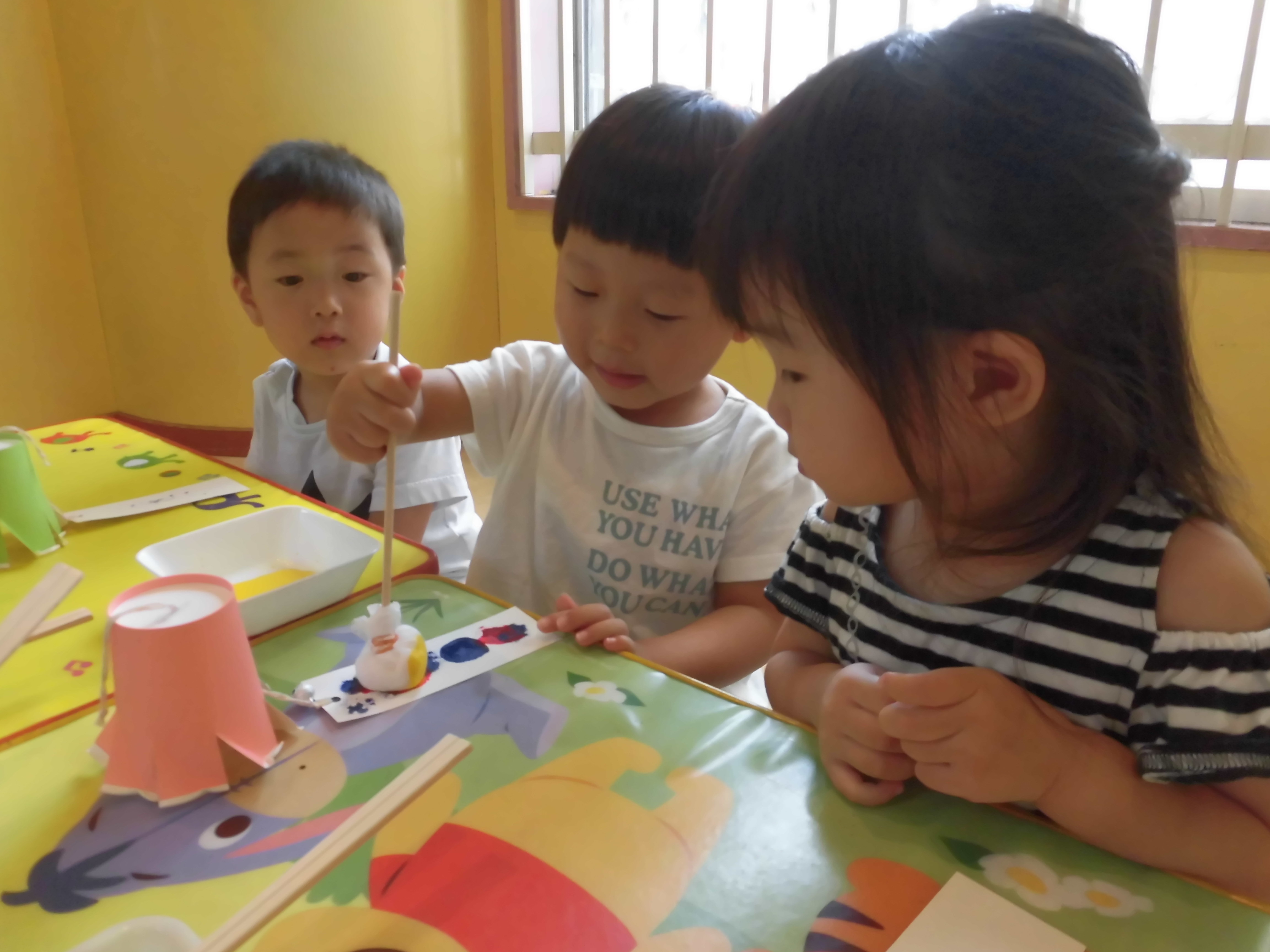 短冊の片面はペンを使い、反対側には絵の具とタンポを使ってお絵描きをしましたよ?