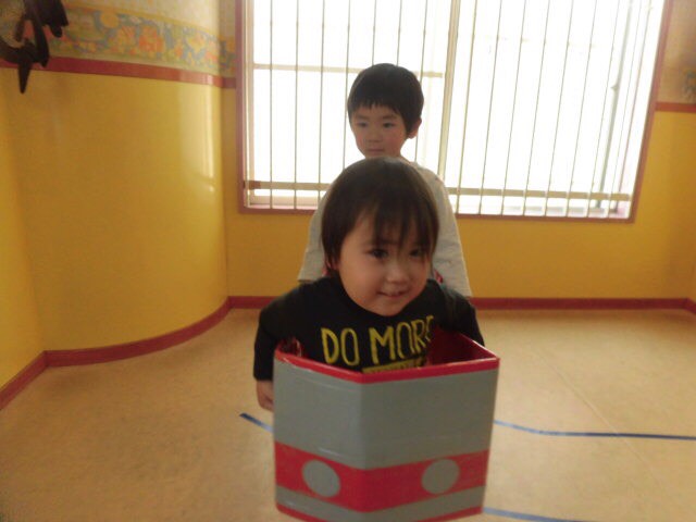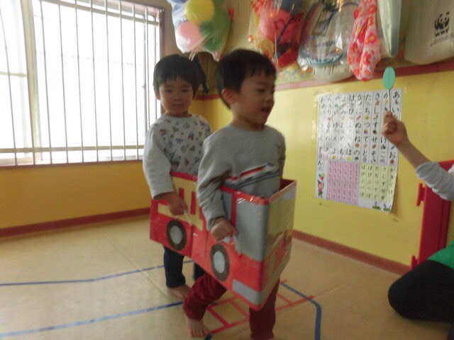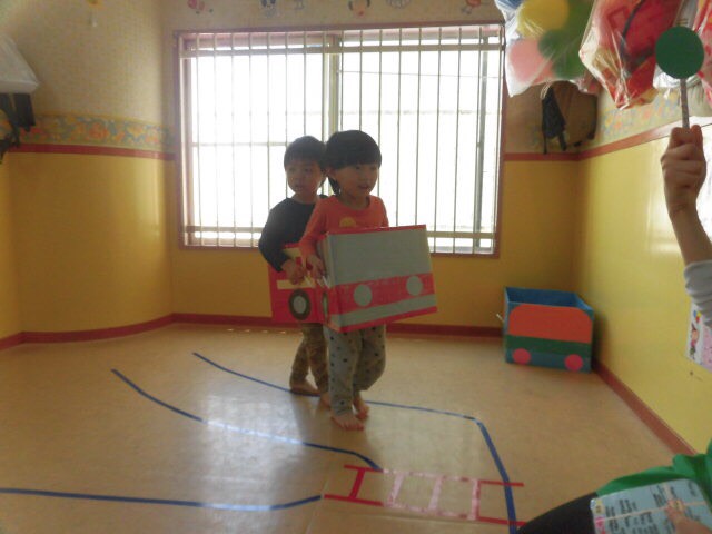 今日は大きいお友達は、簡単な交通ルールを学びながら運転ごっこをしました!