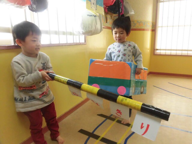 運転だけでなく、信号の札や踏切の棒もみんなにお手伝いしてもらいました^ ^