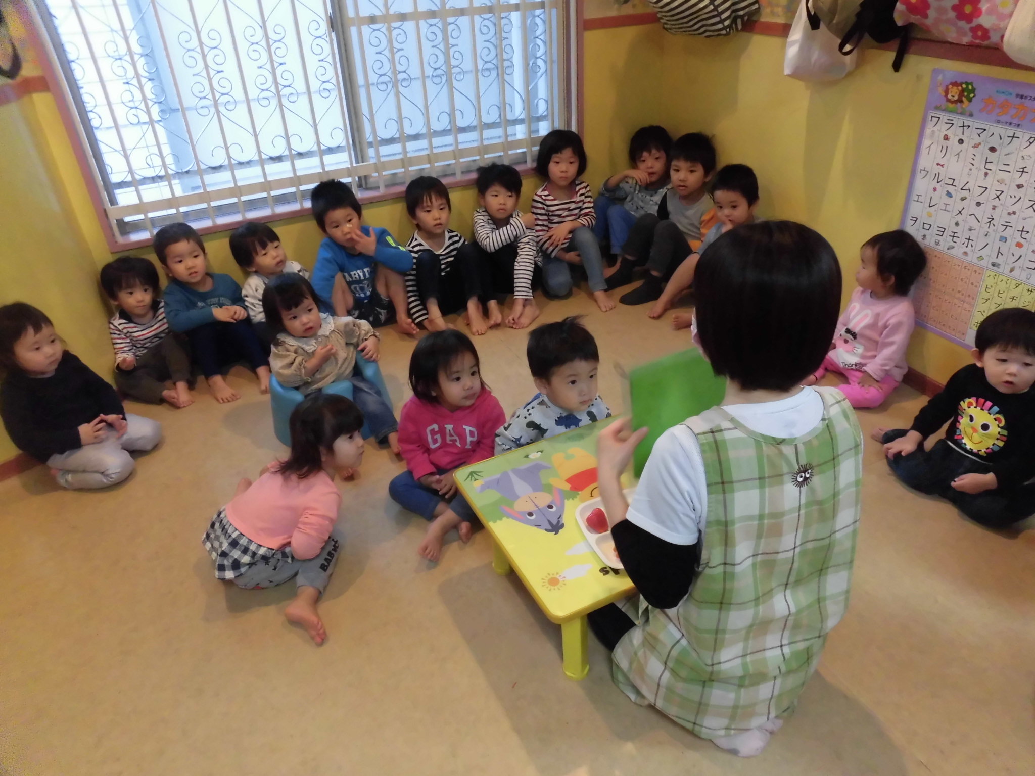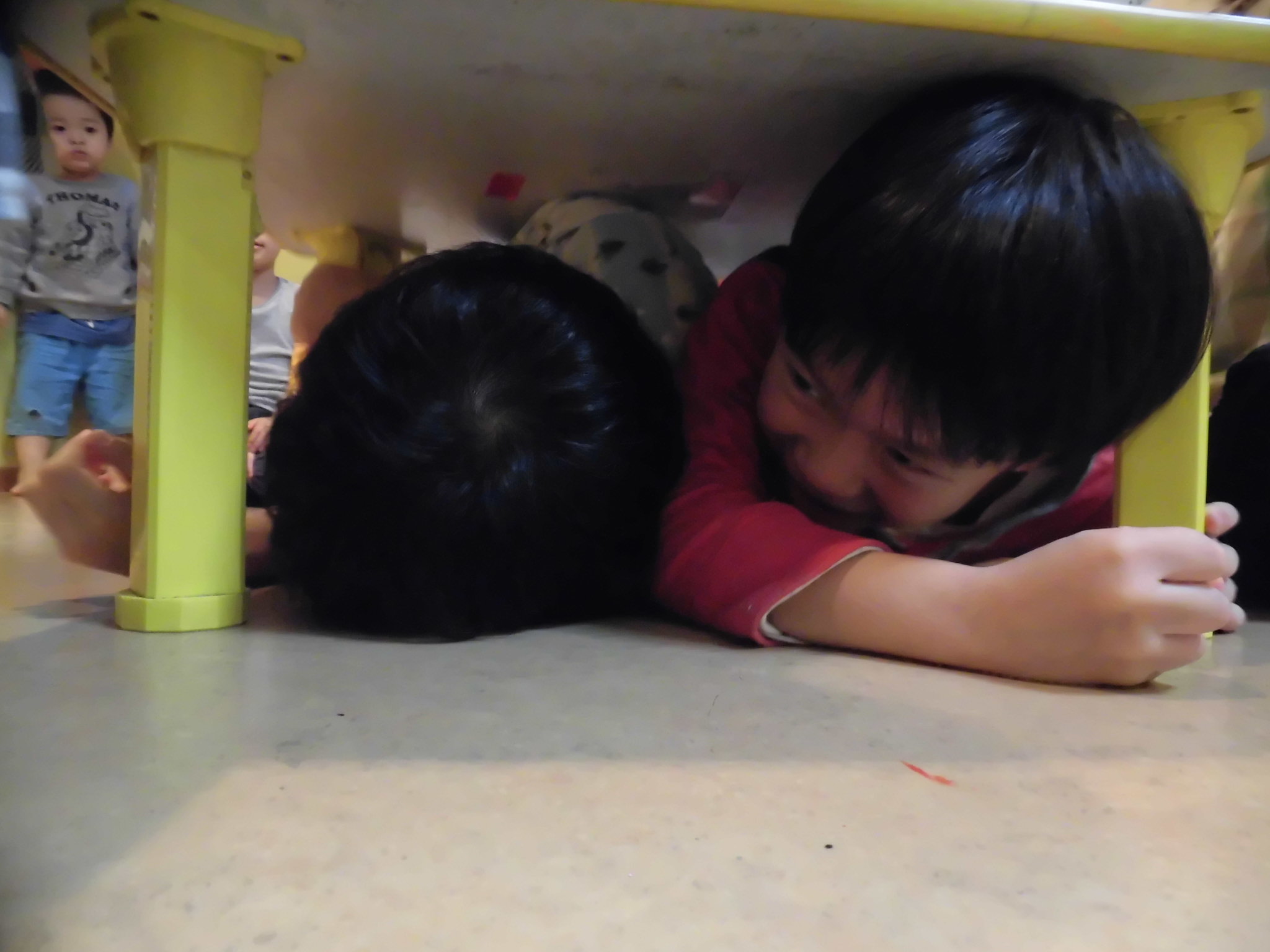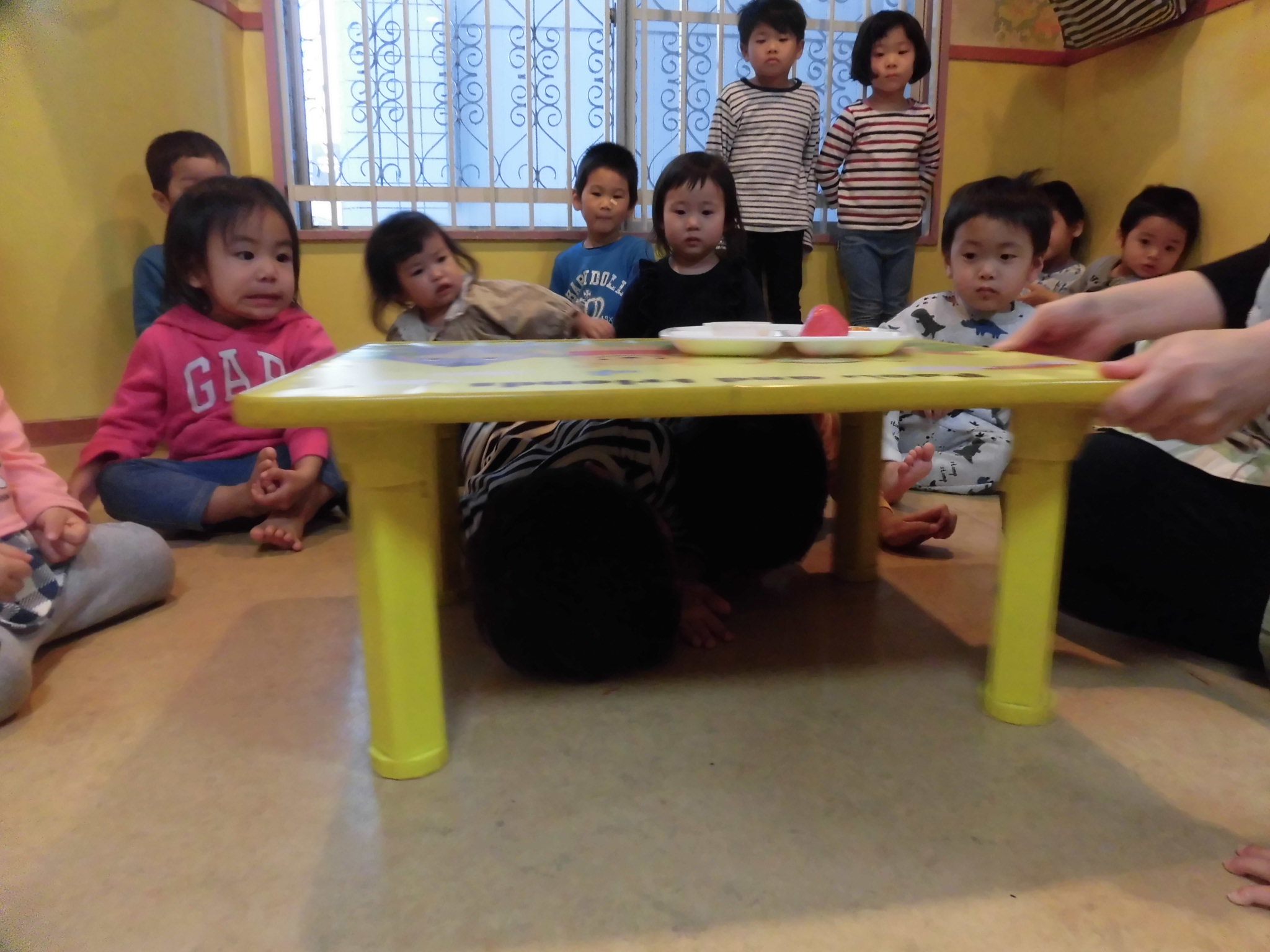 ダンゴムシのポーズや、お家では机の下に潜るなど再度練習や確認を行いました!小さい子も上手に真似してくれましたよ⭐