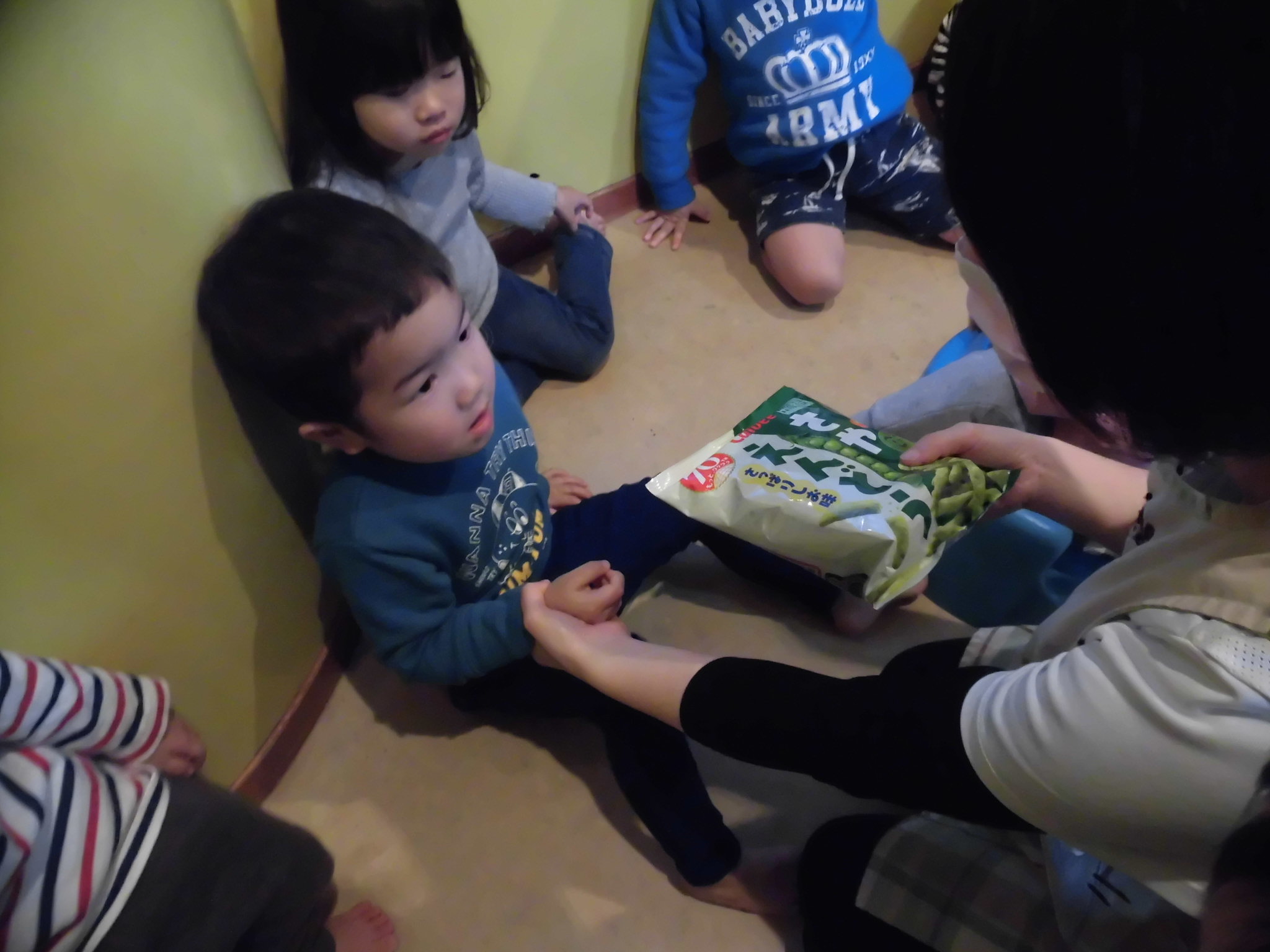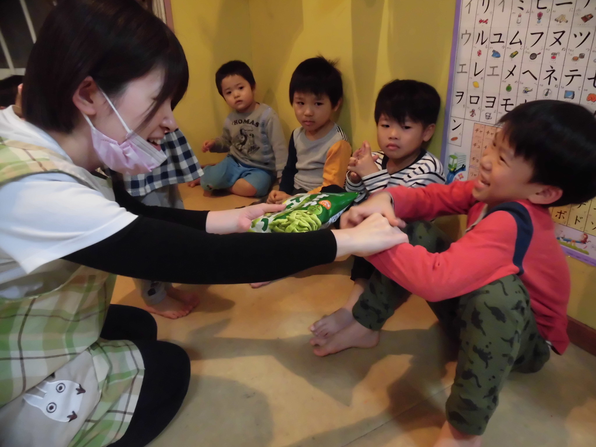 不審者対応の訓練では、保育士が「お菓子をあげるから遊びに行こうか」と誘うと、「嫌だー!」と大きな声で拒否したり、中には不安になって泣き出す子までいました。