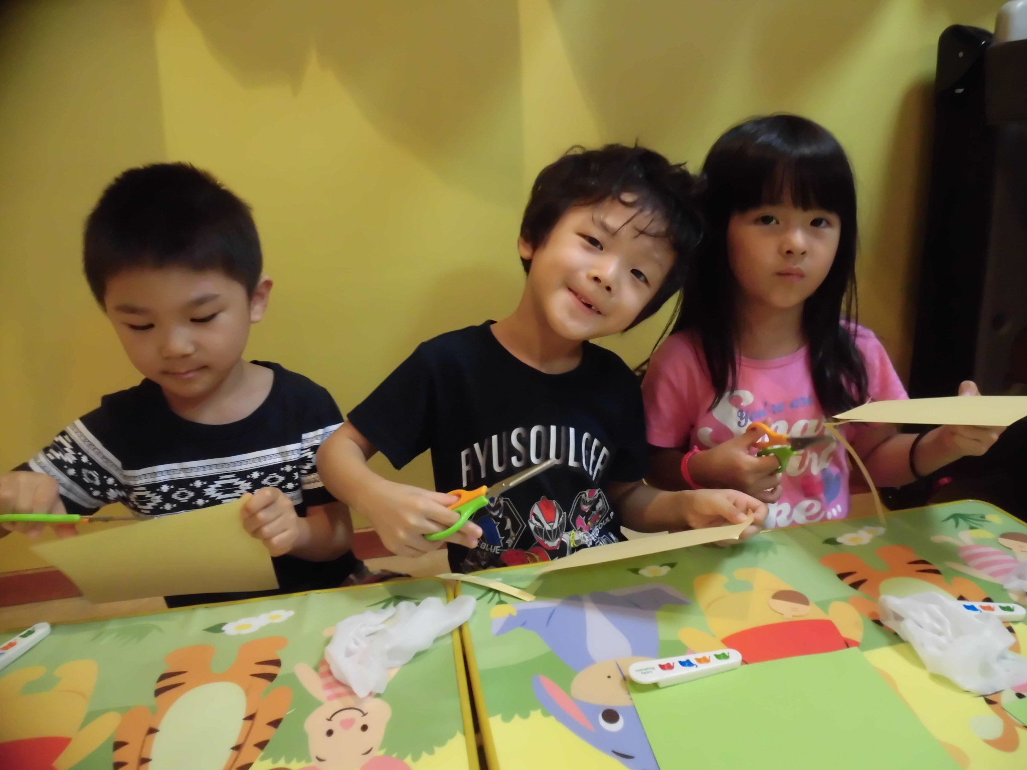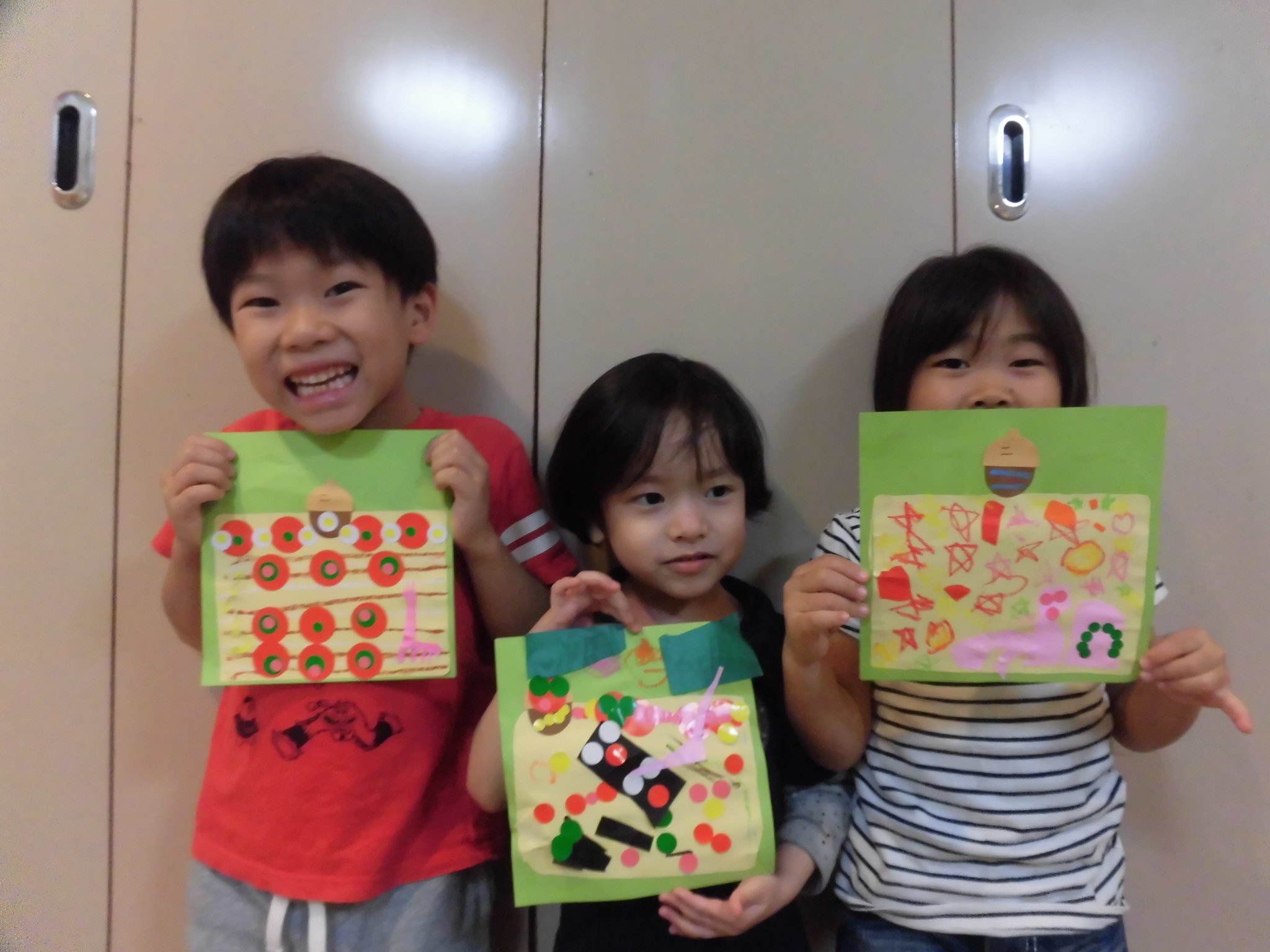 最初は少し不慣れだった折り紙貼りも最後はとても上手になっていました?