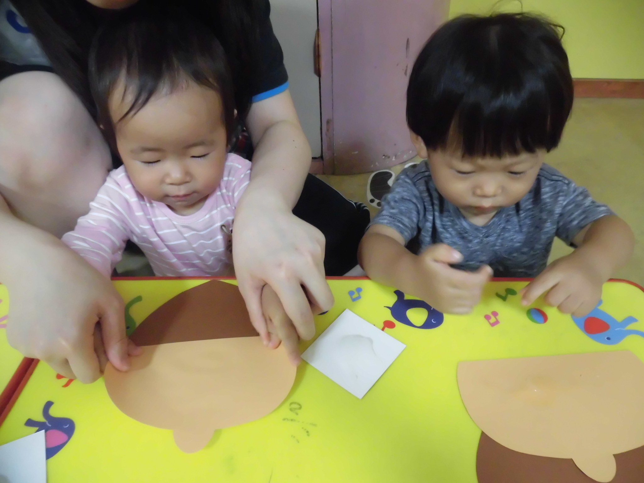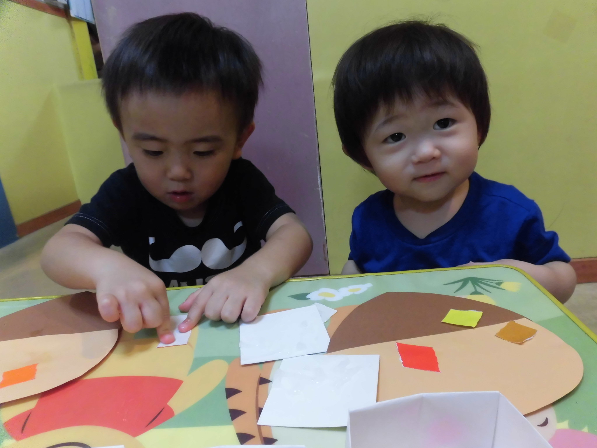 縞模様に時間をかける子、葉っぱ貼りに時間をかける子と