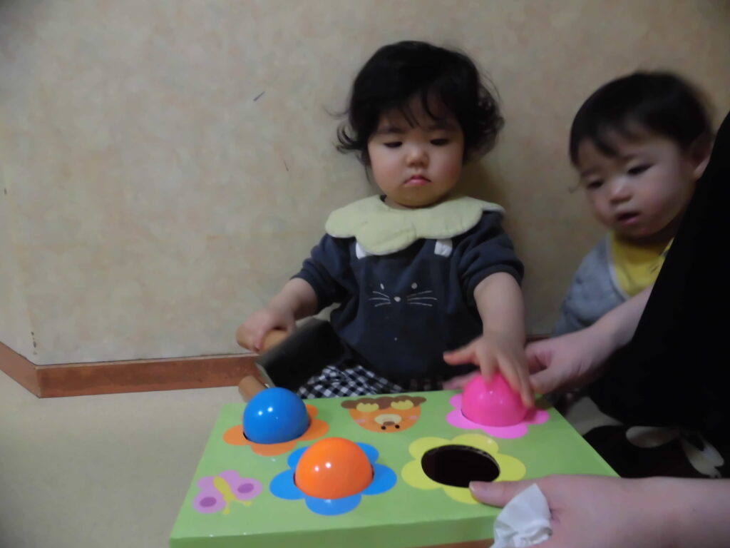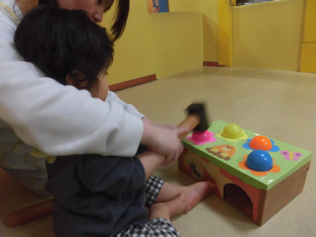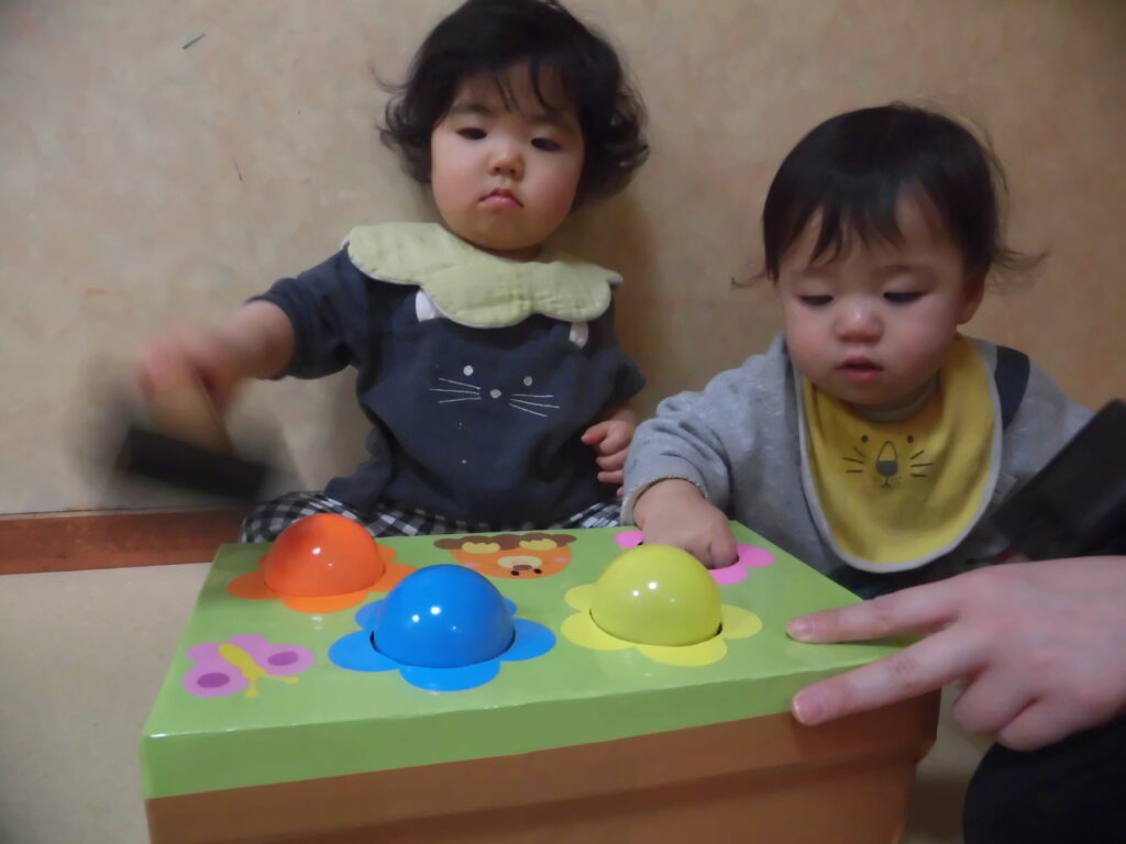 中にはトンカチより手の方が早いと手で落として楽しんでいる子もいました💕