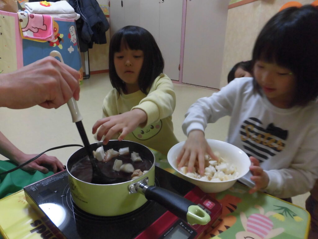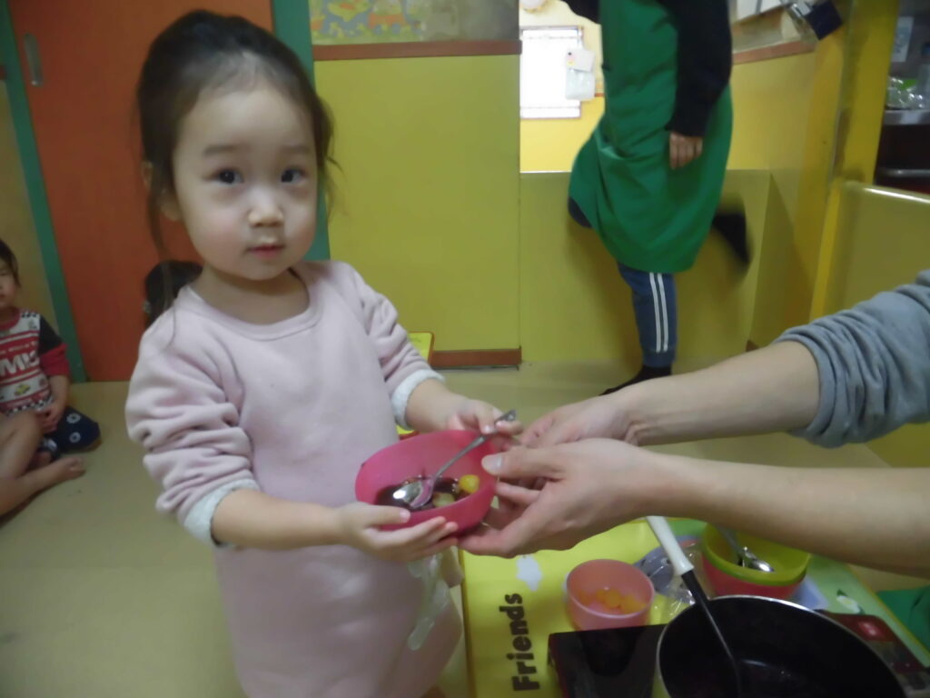 おしるこを気に入ってくれた子は、「美味しい〜‼️」の口の周りにあんこをたくさんつけながら食べていて可愛いかったです😋
