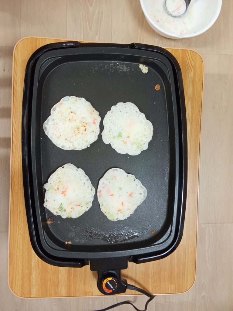 出来たのをホットプレートを焼いていきます。