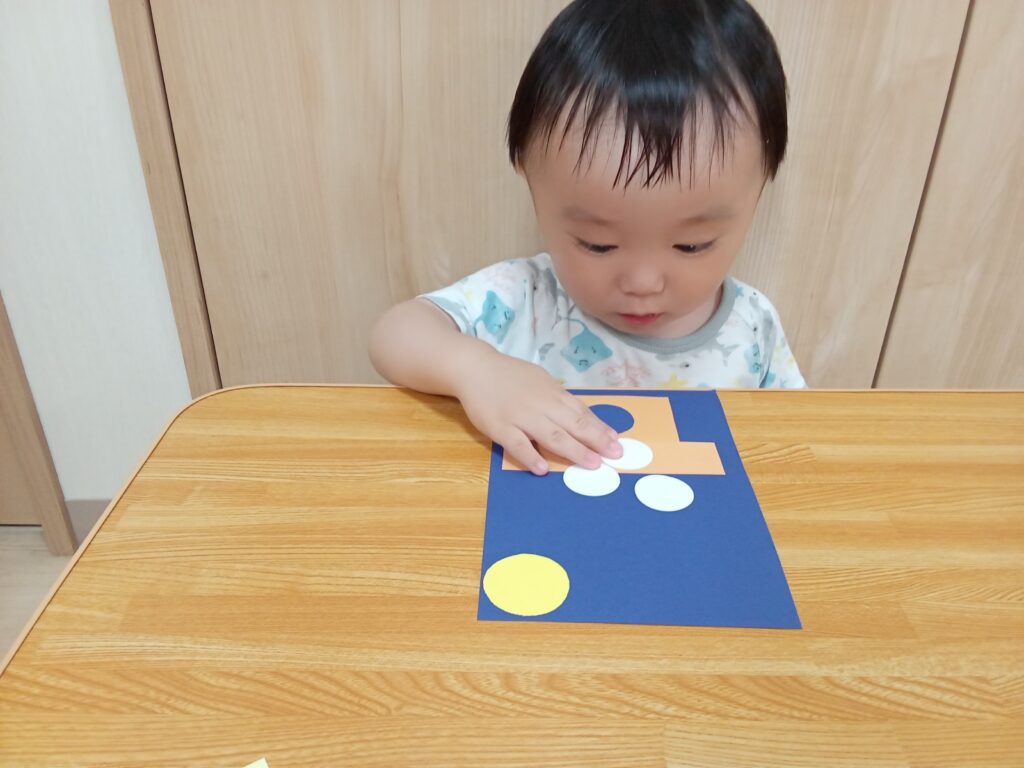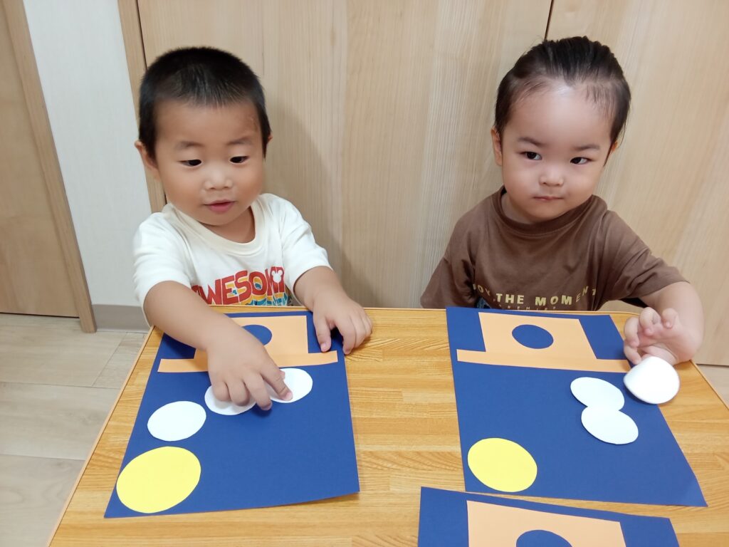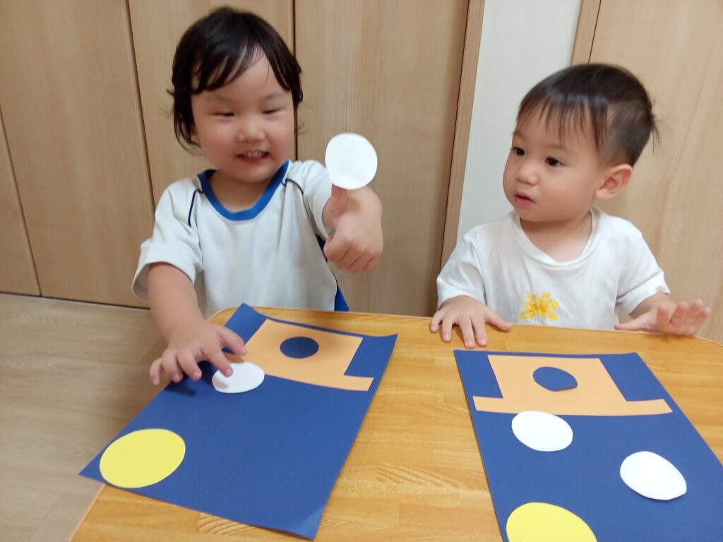 「サッカーボールだー⚽️」や「食べたいー😋」と言いながら貼っていて可愛いかったです♥