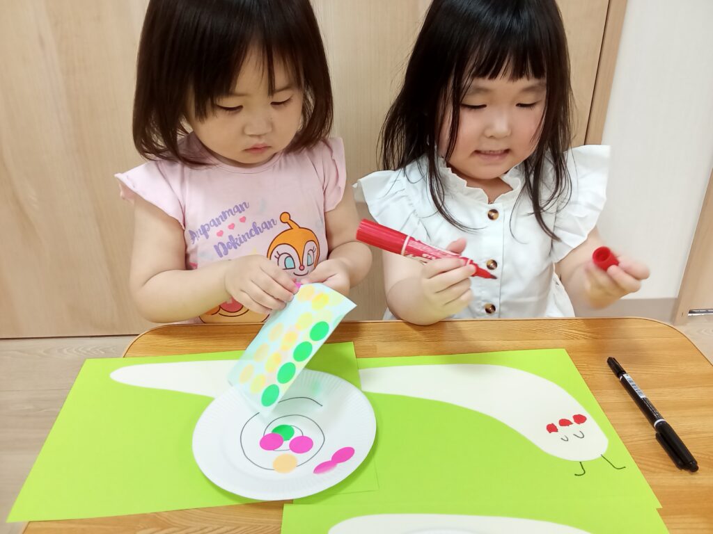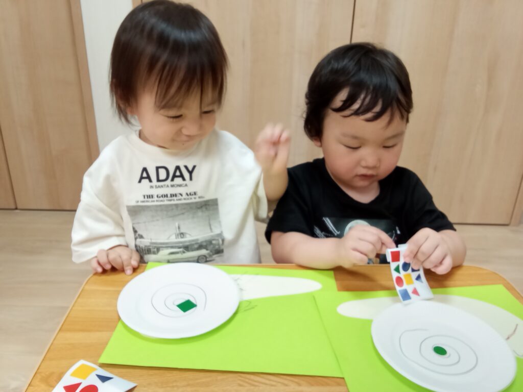 貼る場所の目安があるからか小さい子も上手に貼れていました❗️