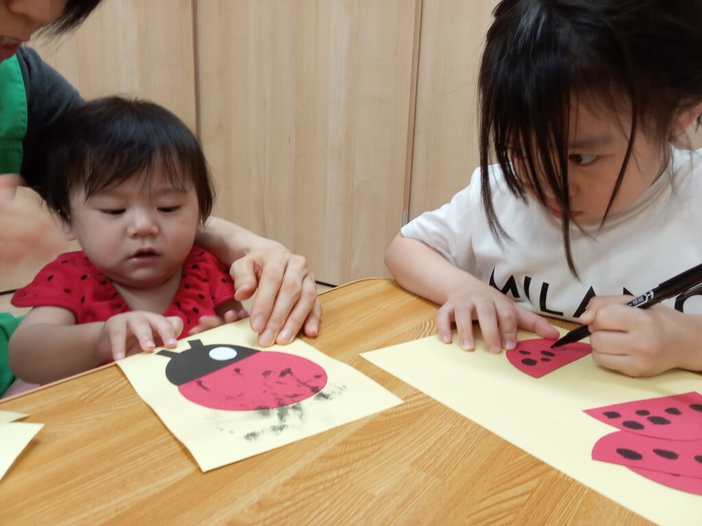 指1本でスタンプする子もいれば、全部の指を使ってダイナミックにスタンプしている子もいましたよ😆