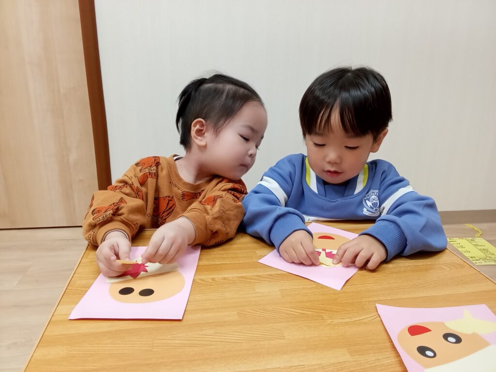 「目はここ、口はここ」と指定せず、「どこかな?」と貼ってもらうと、かなり大胆に貼っていました😅