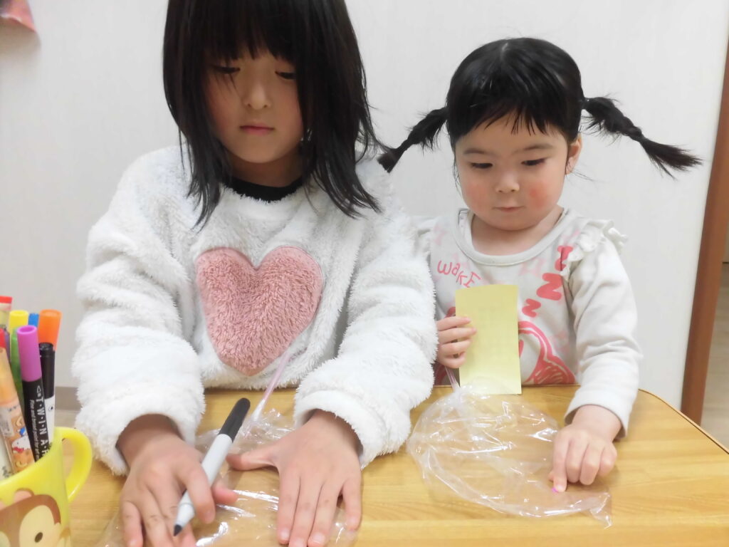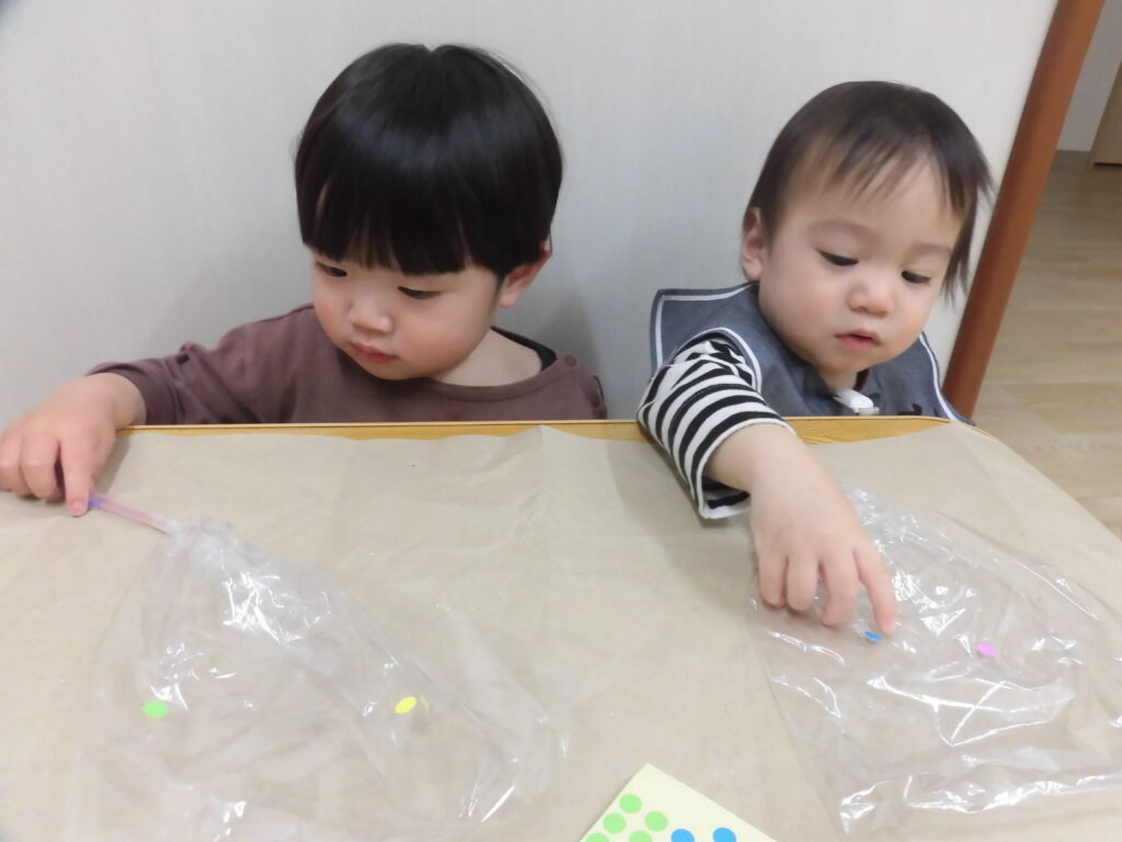 今日はストローに息を吹き込むと膨らむおばけで遊びました👻自分たちでシールを貼ったりペンで顔を描いてもらい、出来上がると完成!なのですが小さい子は息を吹くのがなかなか難しかったようで、苦戦しながらも頑張っていました。
