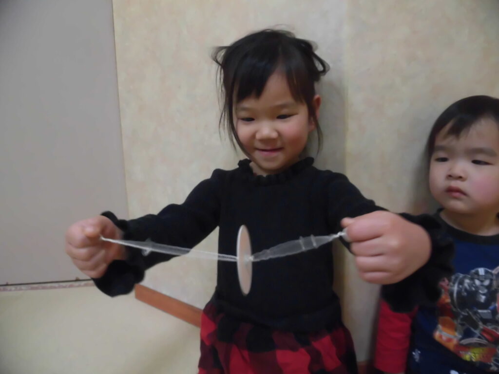 大きいグループさんは、ブンブンゴマをしました!少しコツが必要で、始めは難しそうでしたが、何回もやるうちにコツを掴んでお友達同士で「できた!」と嬉しそうでした😊❤️