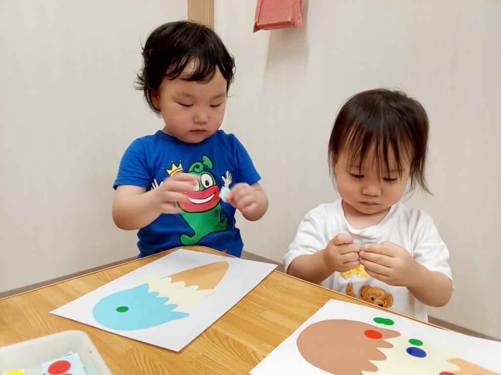 自分でシールを剥がして貼れると、嬉しそうにしていましたよ😄