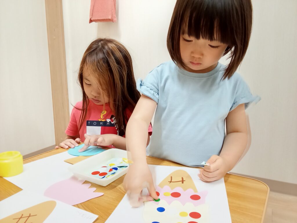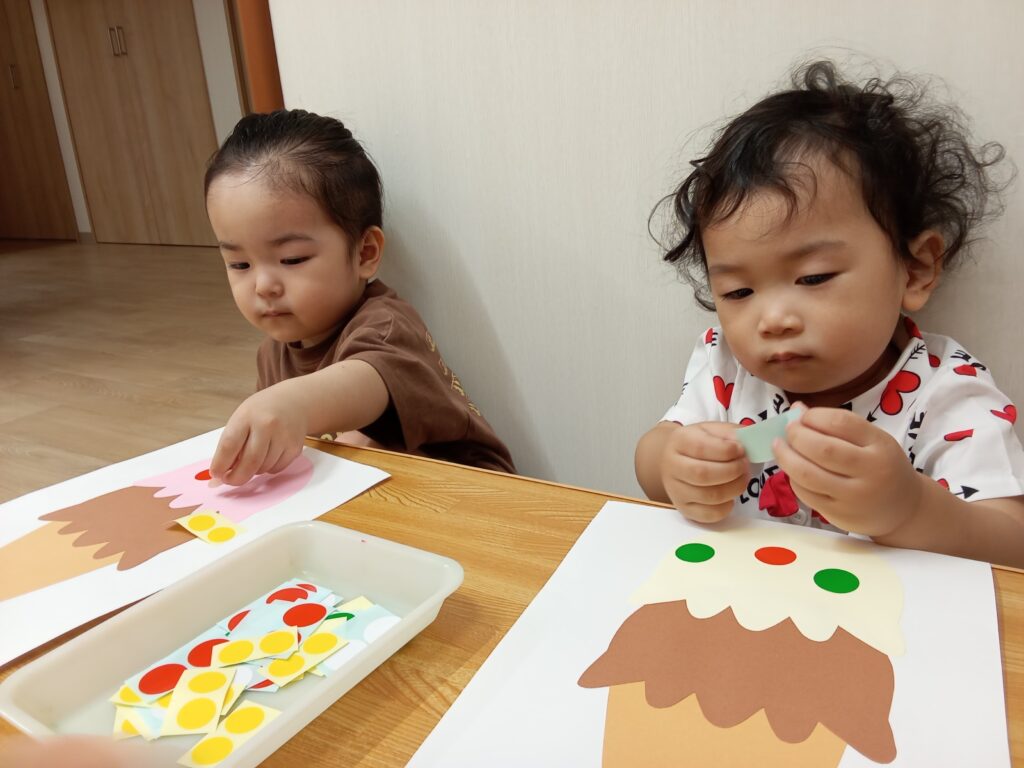 小さいグループさんは、デコレーションのシール貼りに夢中でした。