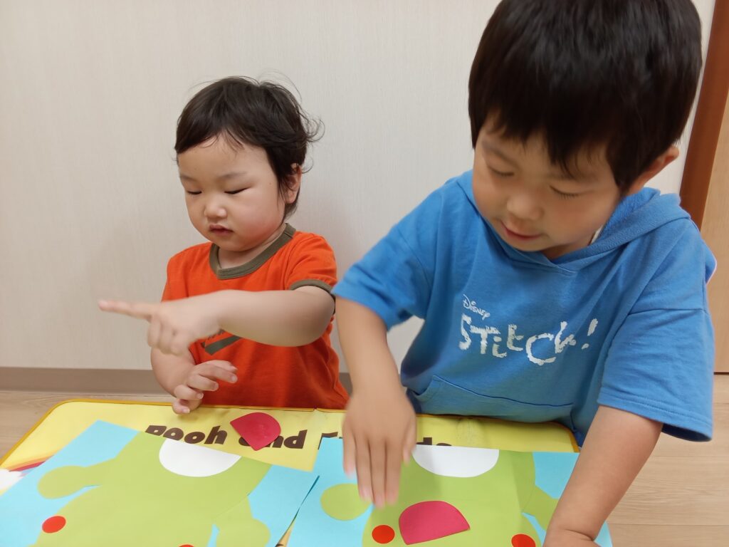 顔のパーツのシールも喜んで貼っていましたよ。
