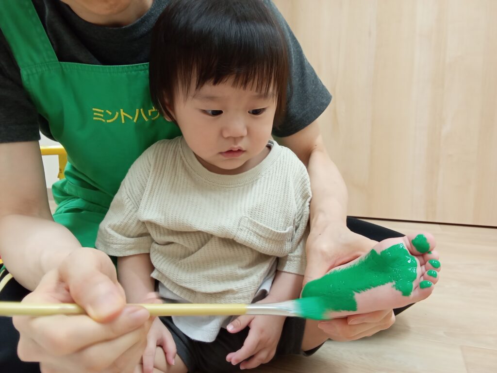足の裏に絵の具を塗られても、ほとんどの子は嫌がらずにじっとしていてくれました😄