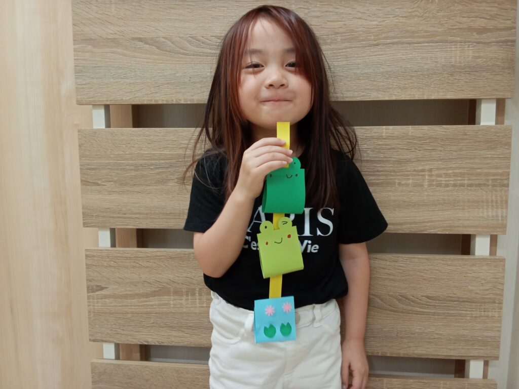 大きいグループさんは、カエルの吊るし飾りを作りました。