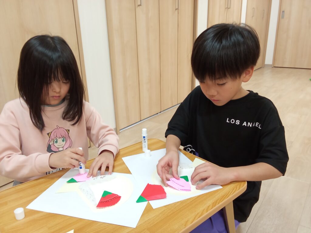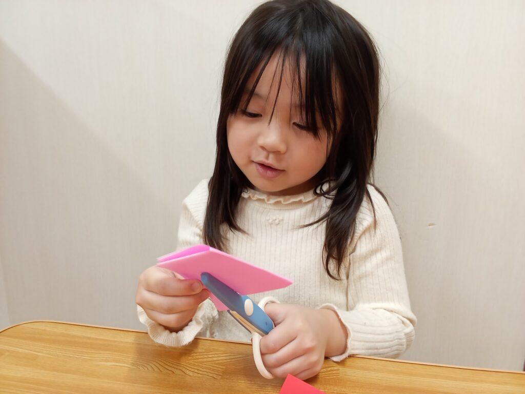 ハサミがいつもと違うギザギザになるハサミで、少し切りにくかったようで苦戦していましたが頑張っていました✨