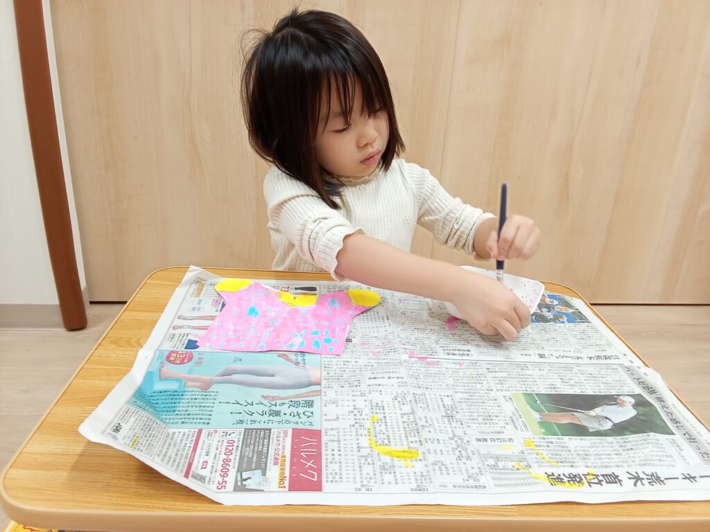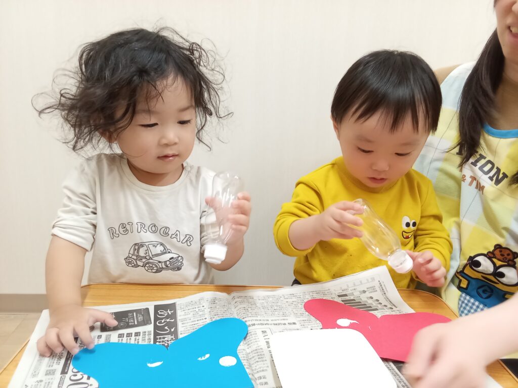 中には触りたい気持ちが溢れ出しインク代わりの絵の具が手に付いちゃった子もいました😊