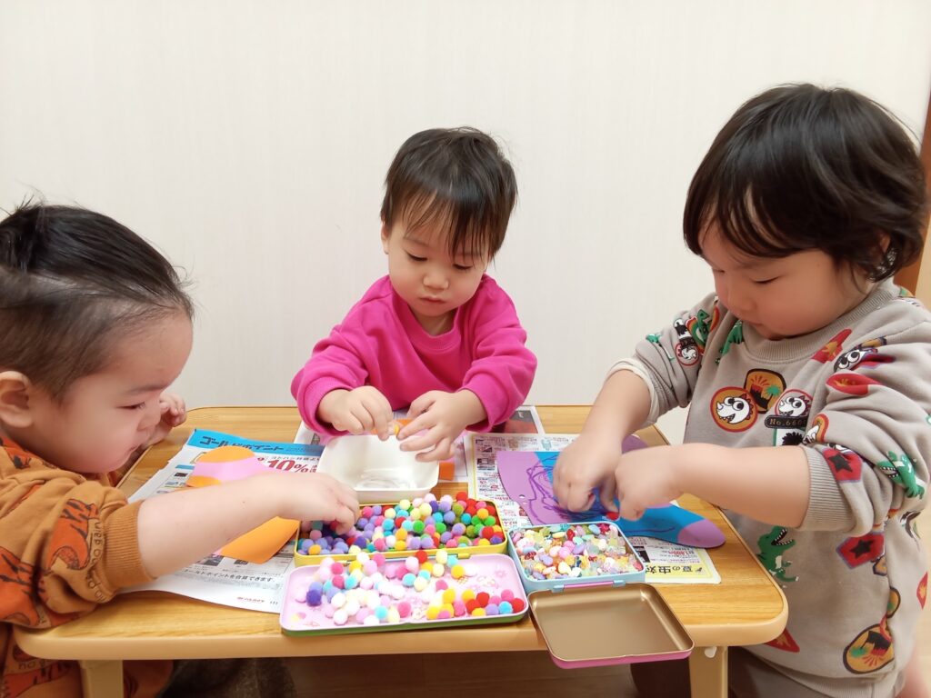 こちらも「しろ❗️」「あかぁ🔴」などとしっかりと選び貼っていっていました。
