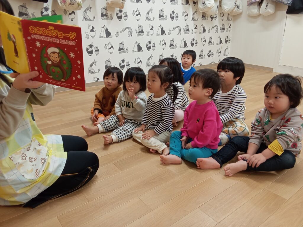 始めに『おさるのジョージ クリスマスまであとなんにち?』という絵本を見てクリスマスのことをお勉強しました⭐️