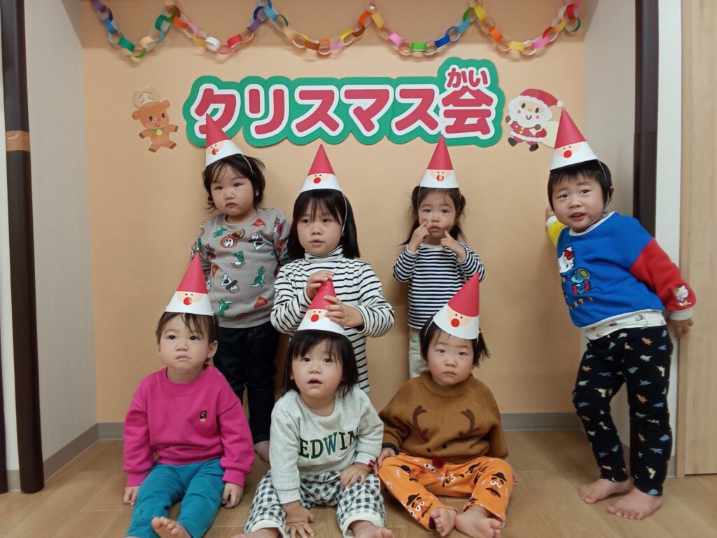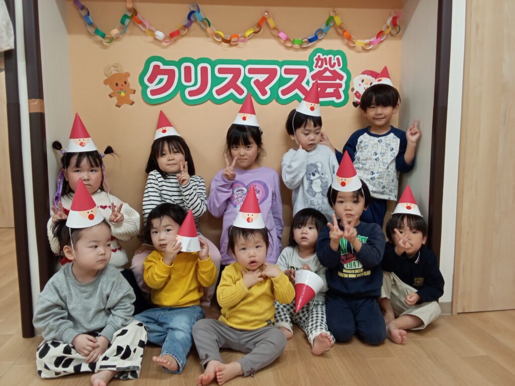 手作りのサンタさん🎅🏻の帽子を被ってみんなで記念写真を撮りました📸